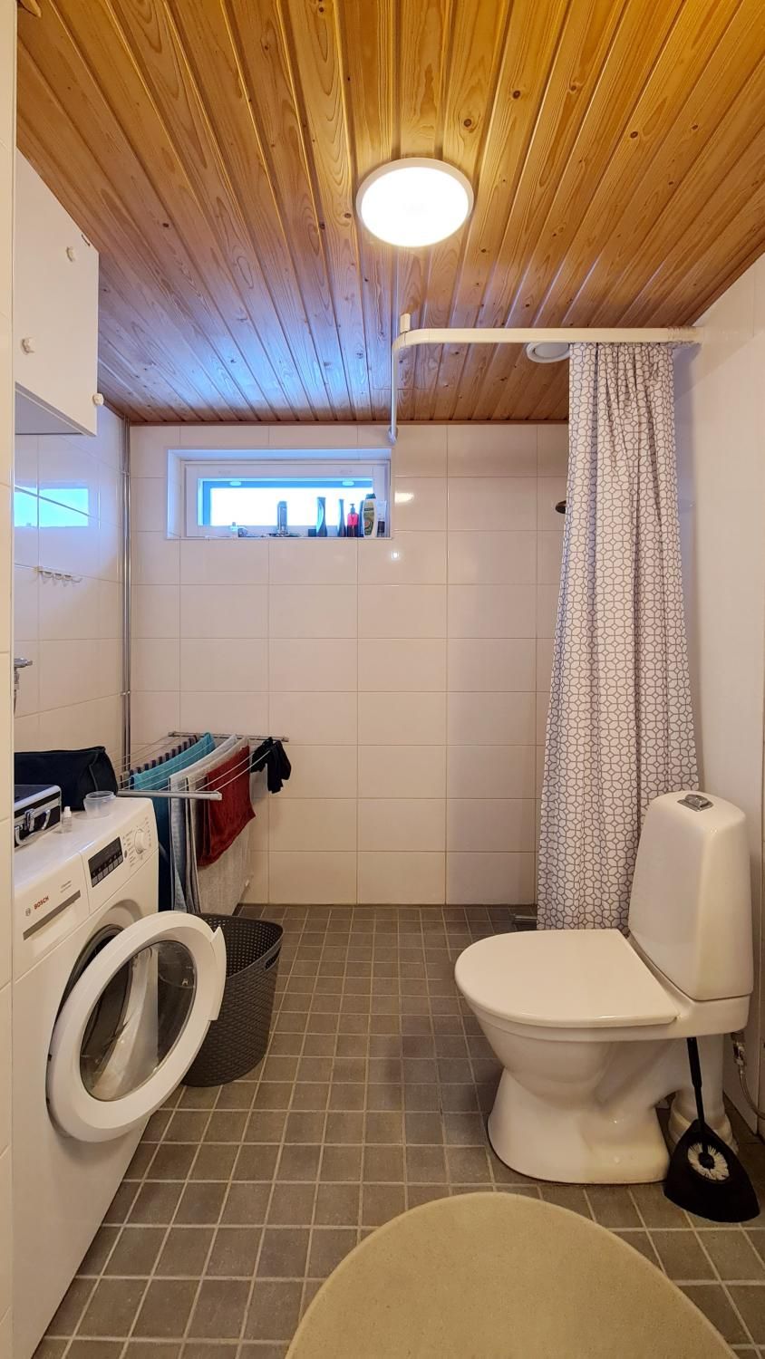 Tilavassa kaakeloidussa kylpyhuoneessa liitäntä pesukoneelle ja lattialämmitys. Asunnolla oma parveke.