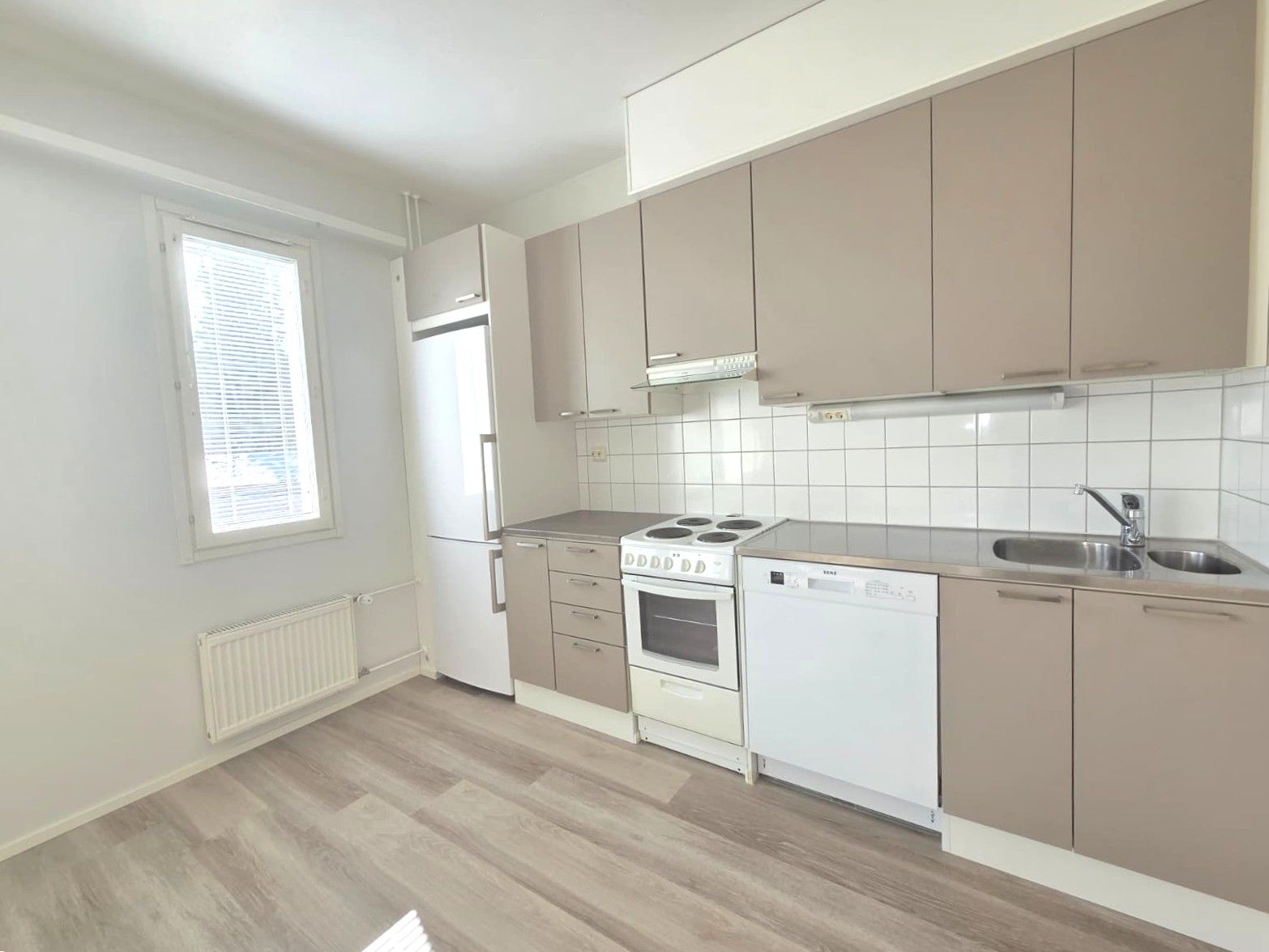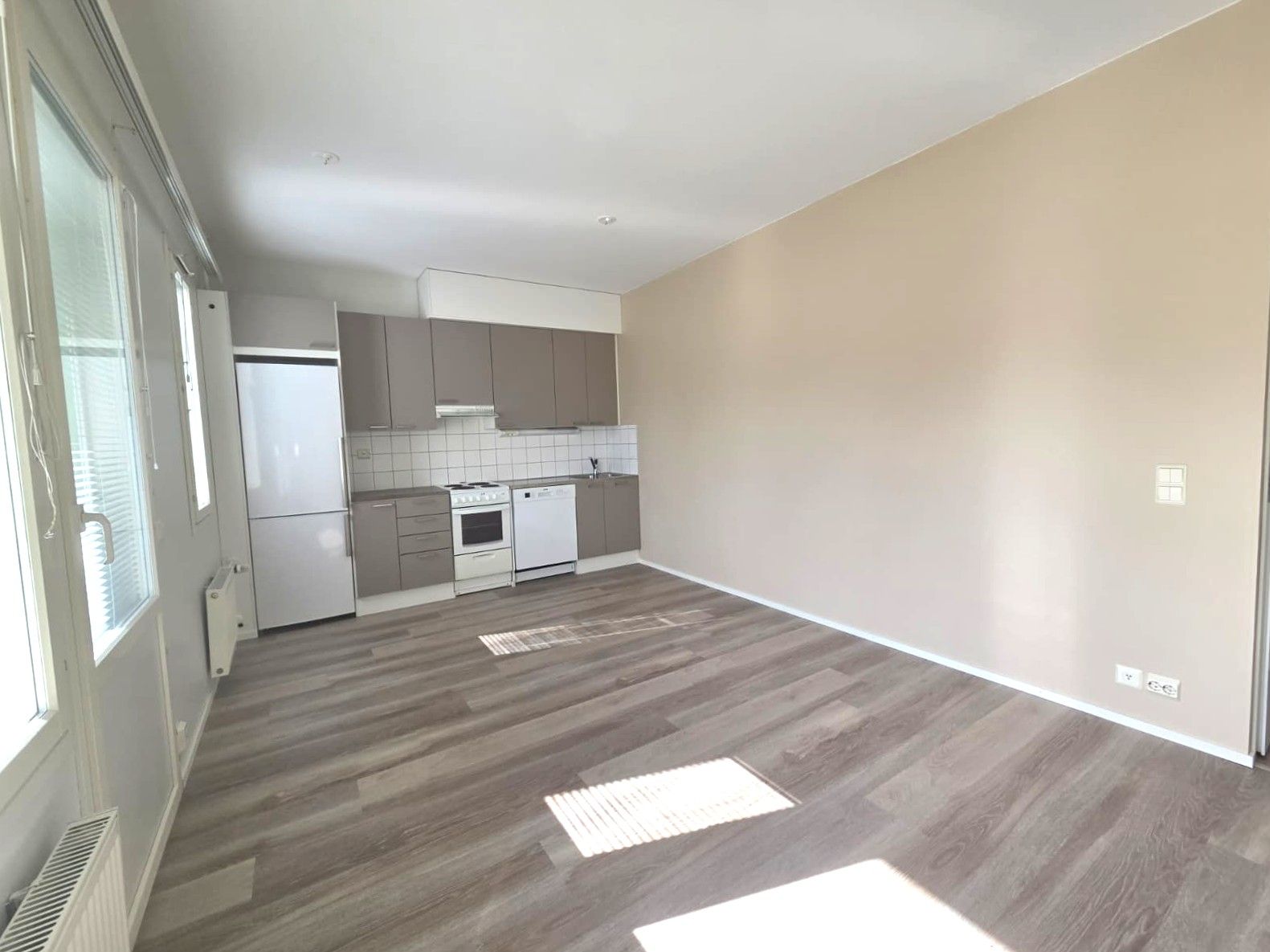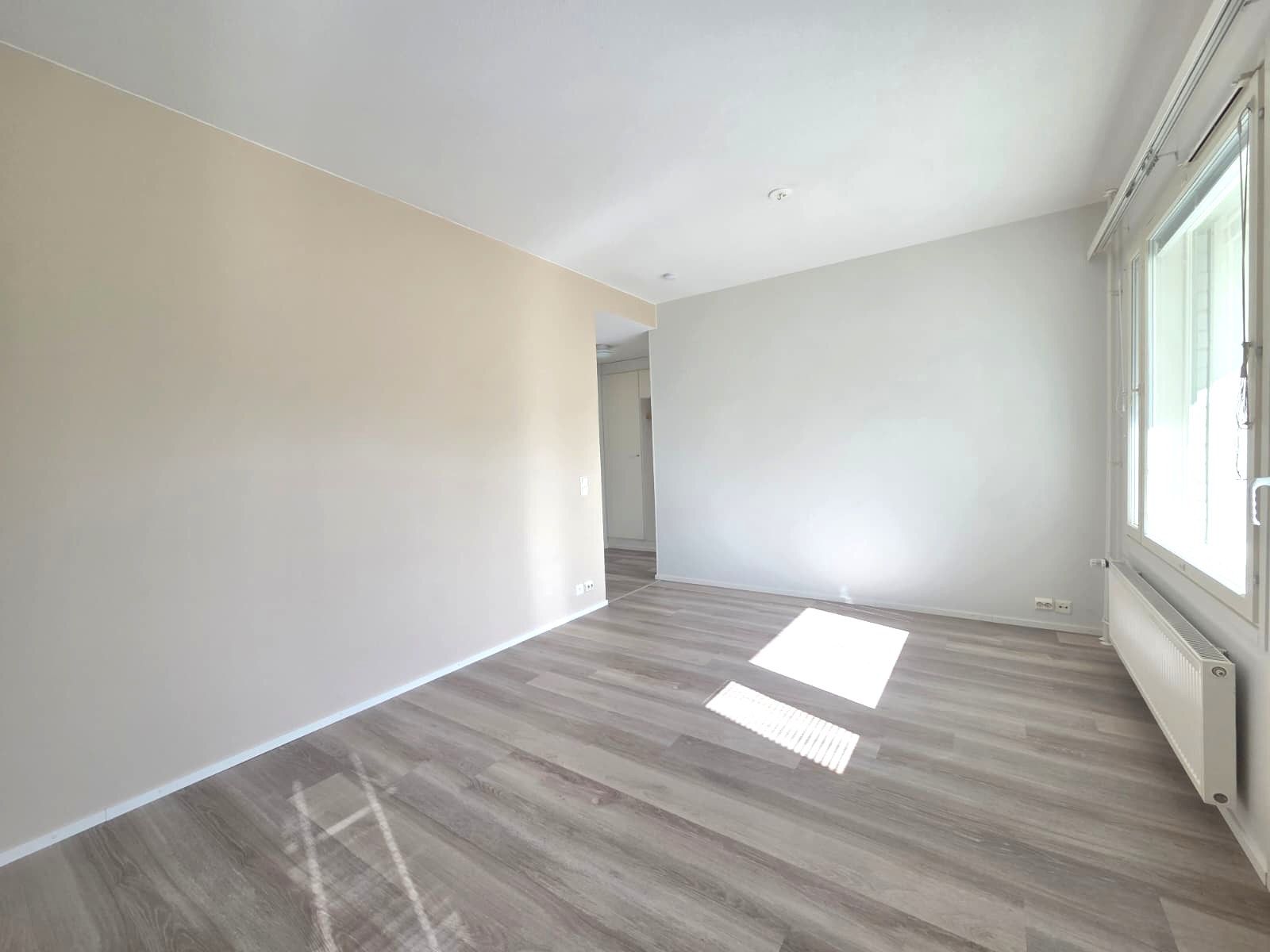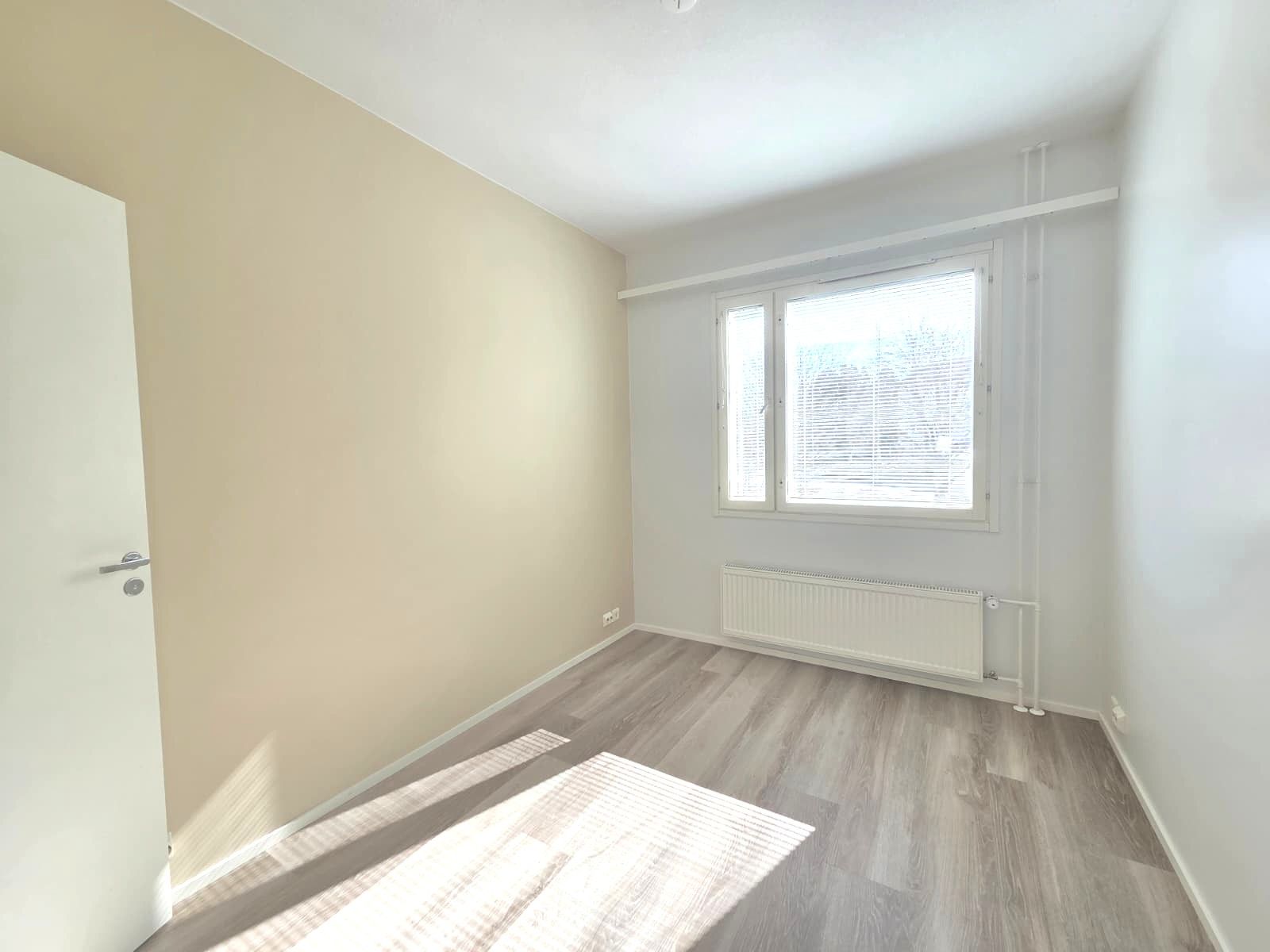 Asuntoon on tehty remonttia maaliskuussa 2026. Seinät on maalattu ja lattiaan asennettu vinyylilankku.