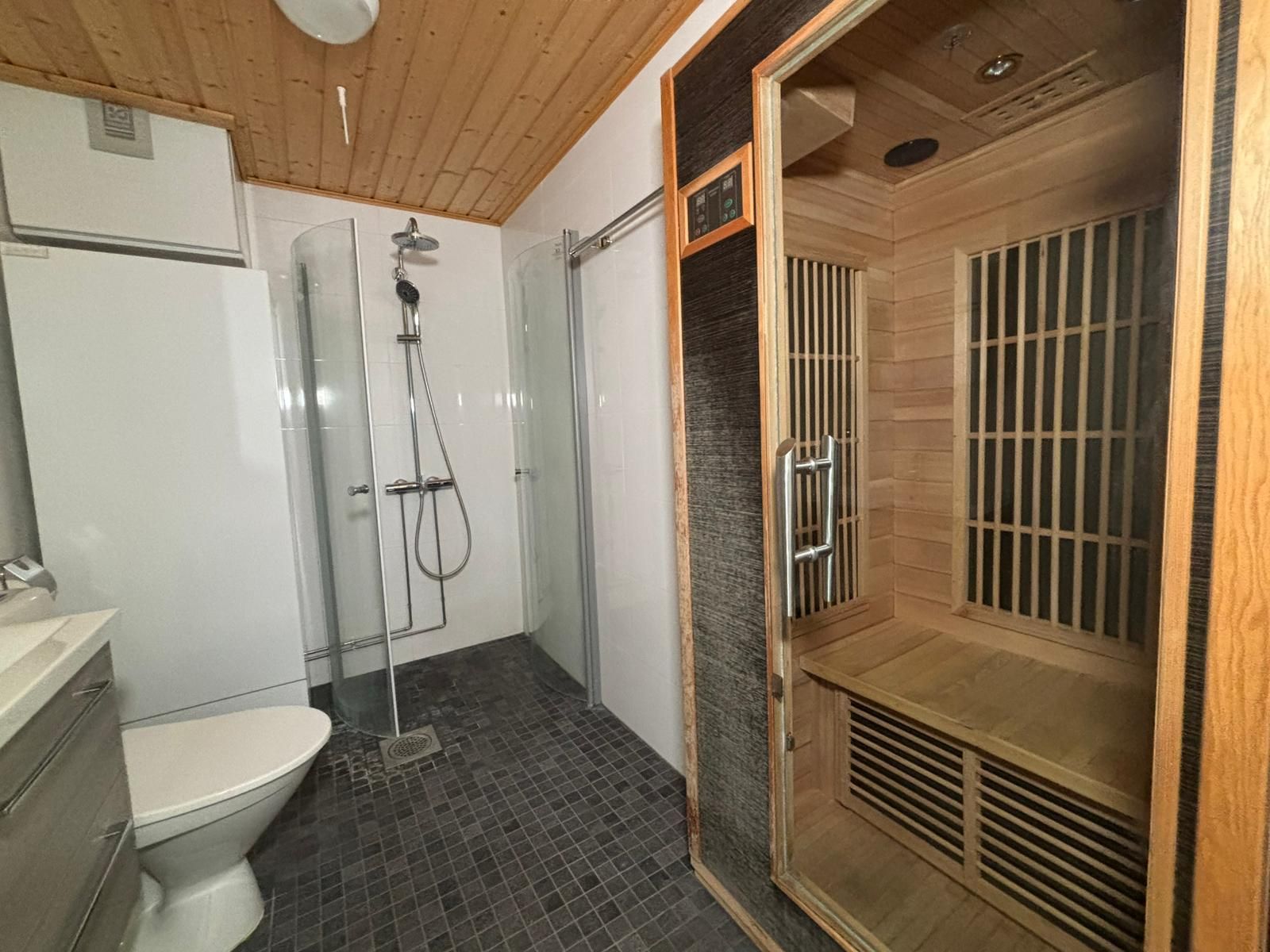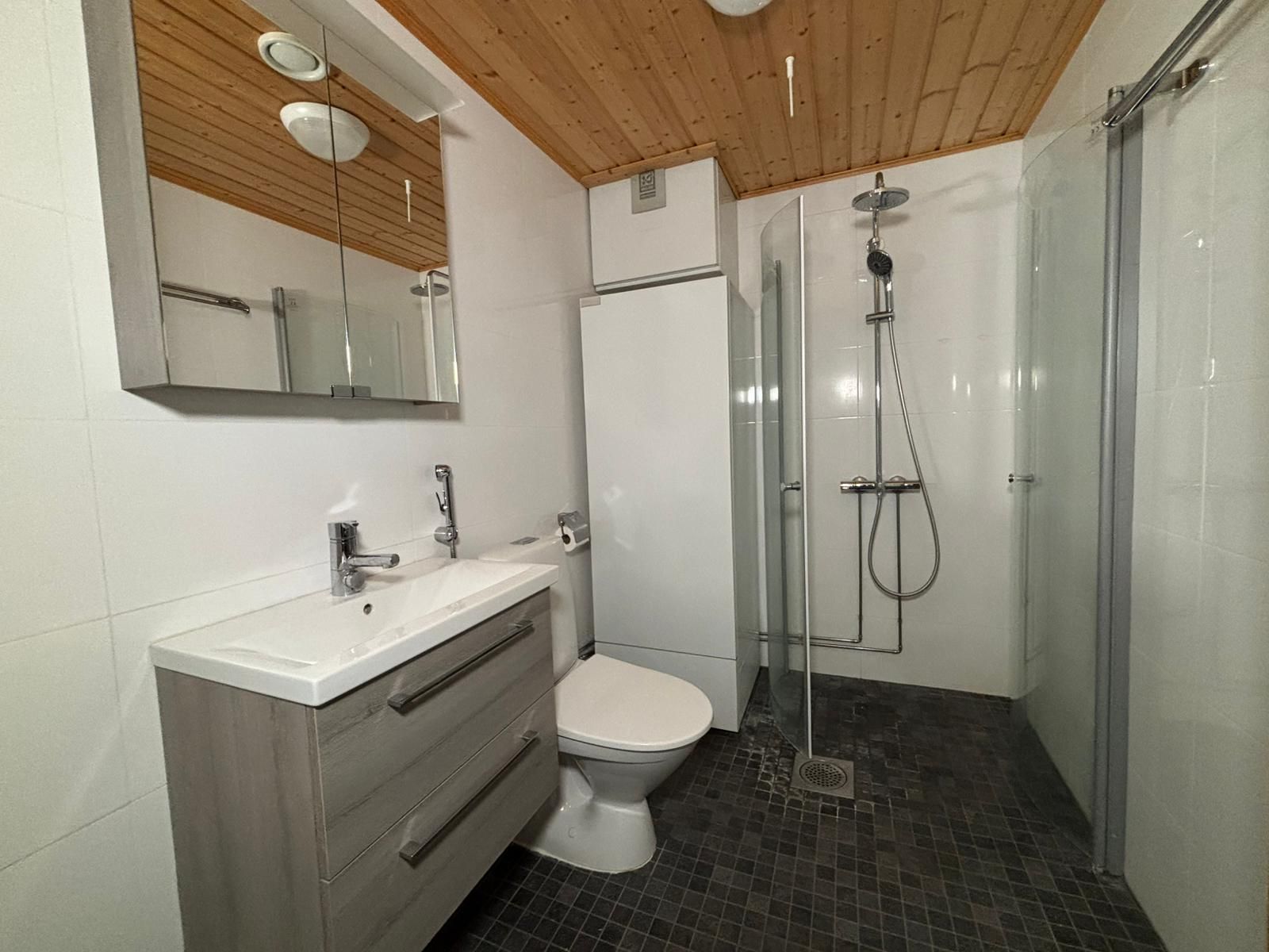 Keittiössä vaaleat keittiökalusteet ja paljon säilytystilaa! Varustukseen kuuluu jääkaappi-pakastin, liesituuletin ja hella. Kylpyhuoneessa pesukoneliitäntä ja infrapunasauna! Eteisessä, käytävällä ja makuuhuoneessa kaapistot. Asunnossa on siis oikein mukavasti säilytystilaa. Taloyhtiössä on sähkölämmitys.