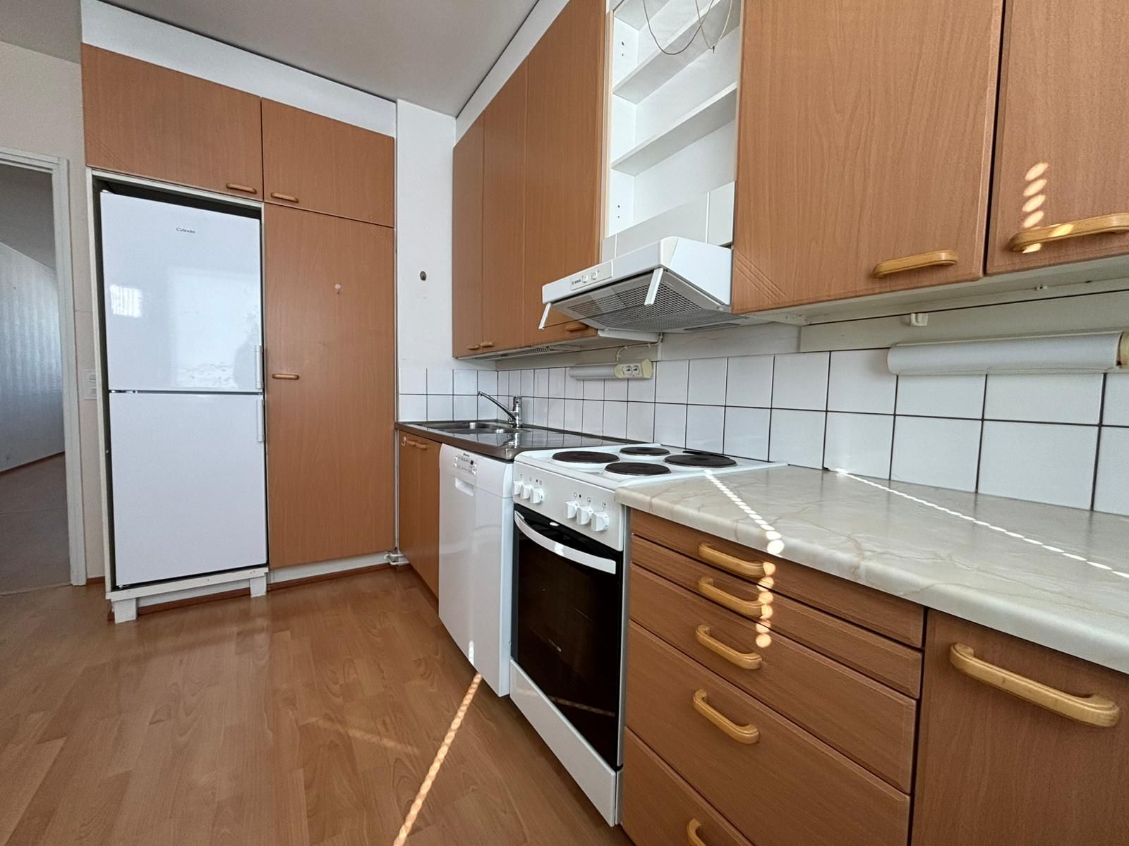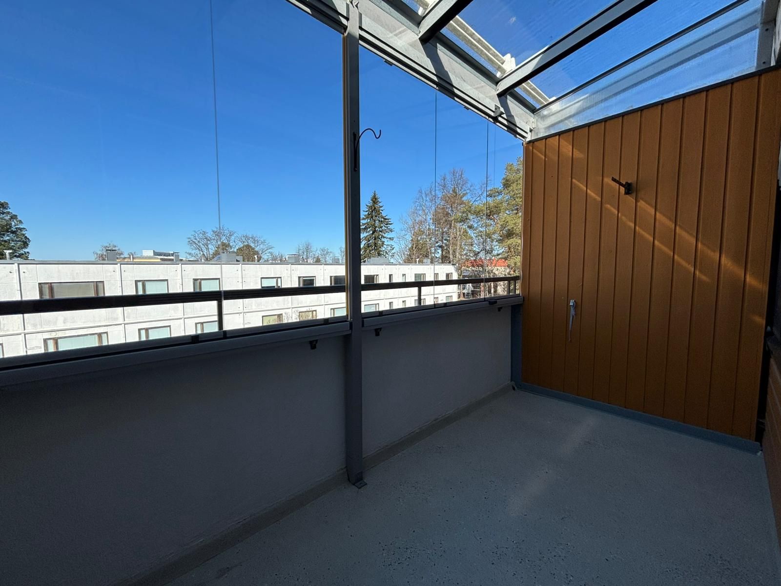 Huoneistossa on siistit laminaattilattiat ja vaaleat tapetoidut seinät. Lasitettu tilava parveke sisäpihan suuntaan. Kylpyhuoneessa on liitäntä pyykinpesukoneelle. Keittiössä tilaa ruokapöydälle ja varusteina 2 vuotta sitten uusitut jääkaappipakastin, liesi ja astianpesukone!