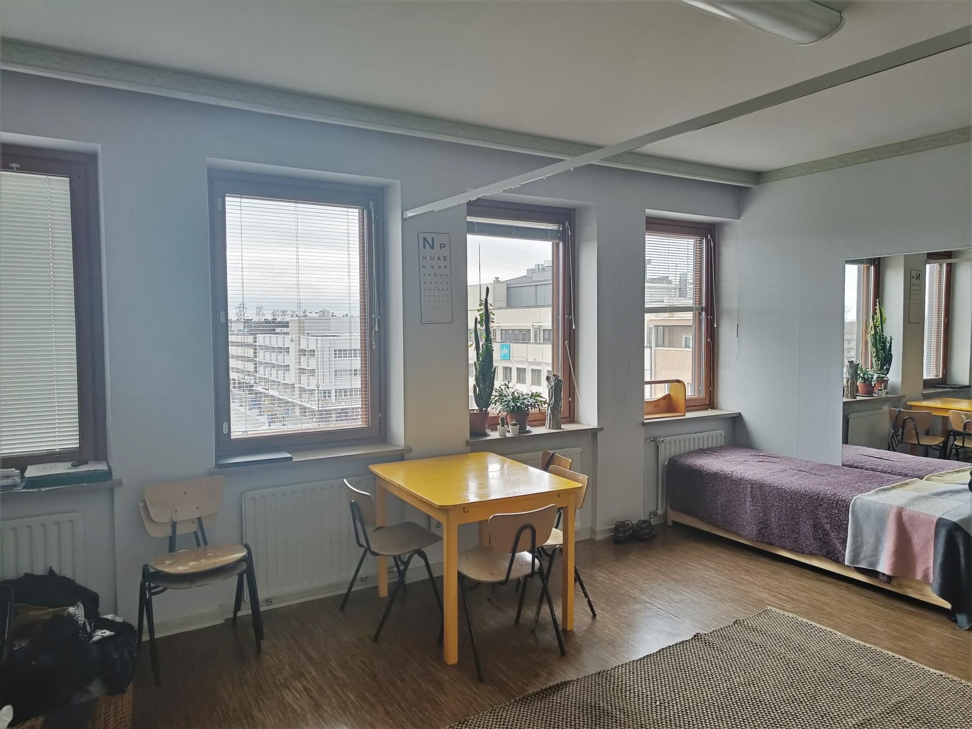 Hissitalon kuudennen kerroksen huoneisto. Kaakeloitu kylpyhuone, jossa on liitäntä pesukoneelle. Vuokraan sisältyy autopaikka! Autopaikan kanssa vuokra on 695€/kk (sis. vesimaksun).