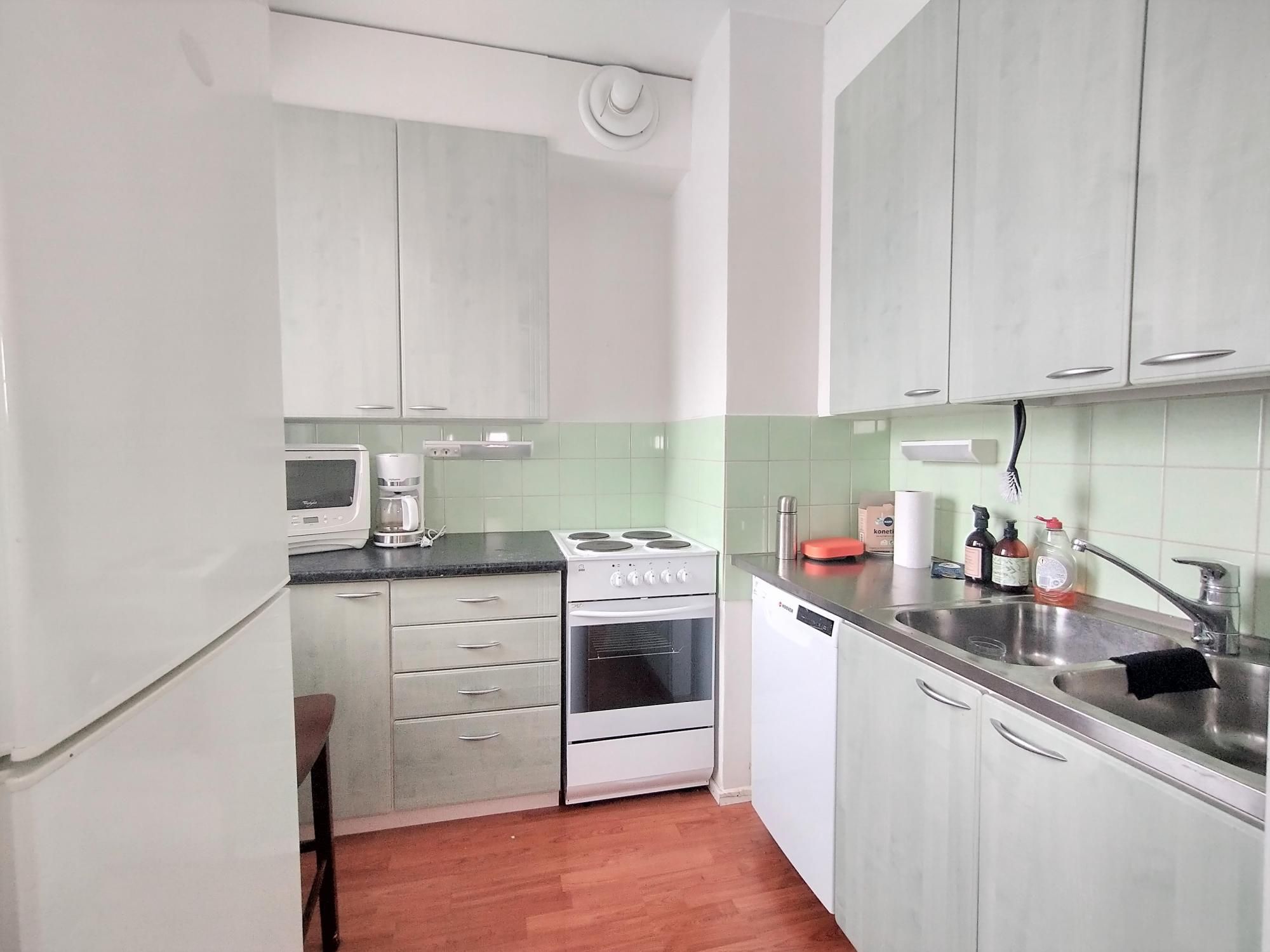 Keittokomerossa jääkaappipakastin, liesi ja astianpesukone. Kylpyhuoneessa liitäntä pyykinpesukoneelle, lattiat ja seinät laattaa. Muissa huoneissa laminaattilattiat ja maalatut seinät. Asunnossa myös vaatehuone.