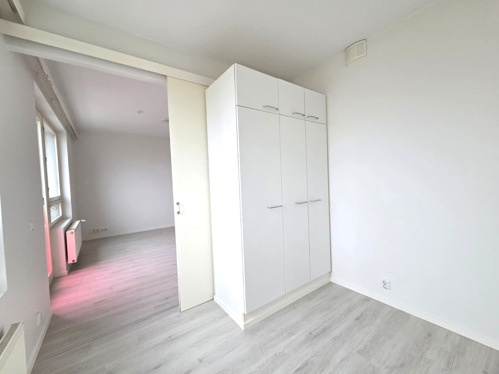 Kylpyhuoneessa on liitäntä pyykinpesukoneelle. Olohuoneessa on hyvin tilaa sohvakalusteille ja makuuhuoneeseen sopii parisänky. Asunto sijaitsee hissitalon ylimmässä kerroksessa.