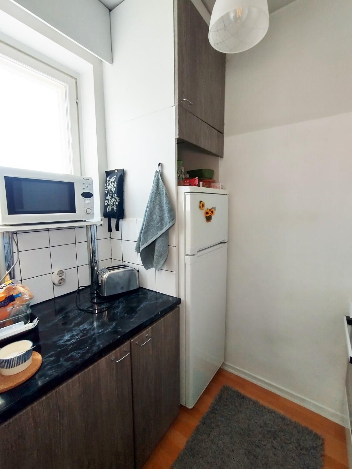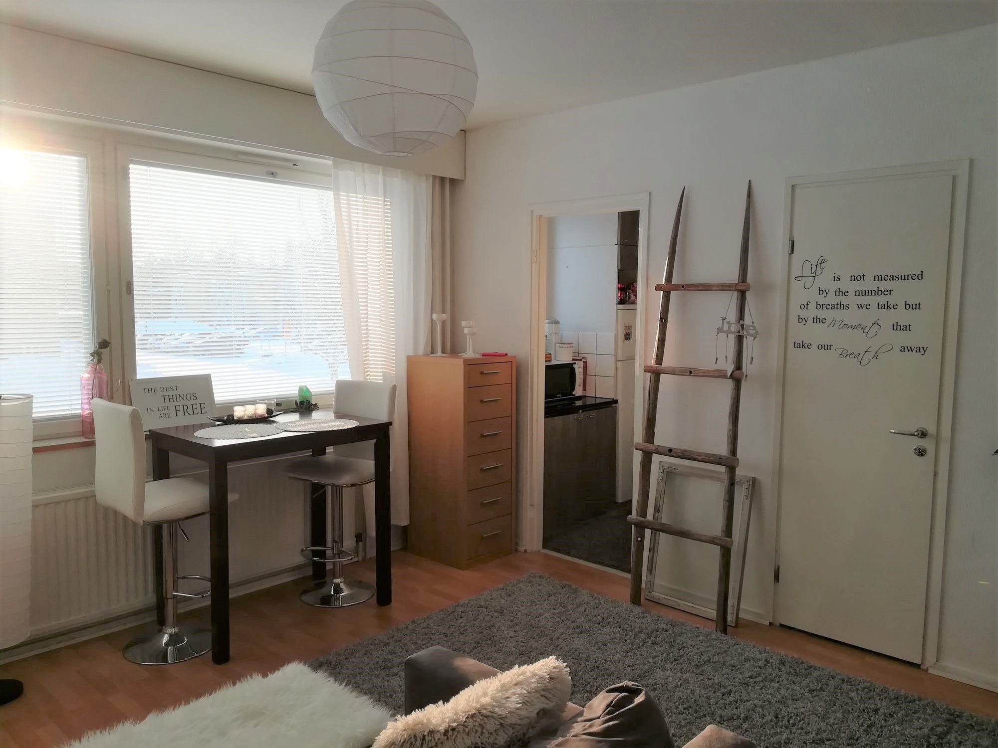 Keskustaan matkaa alle 2 km. Huoneiston lattiat laminaattia, seinät tapetoidut. Kaakeloidussa kylpyhuoneessa suihku ja pesukoneliitäntä. Tilava makuualkovi ja lisää säilytystilaa tuova vaatekomero