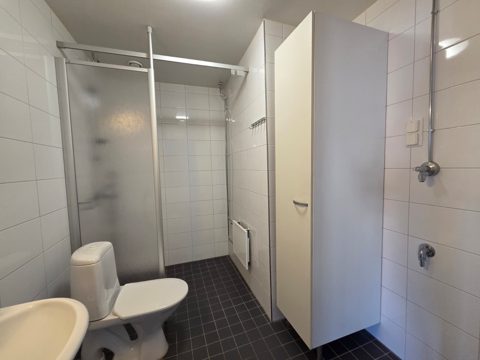 Asunnon lattiat ovat harmaata muovimattoa ja kylpyhuone on kaakeloitu. Kylpyhuoneessa on liitäntä pyykinpesukoneelle. Makuuhuoneessa on mukavasti kaappitilaa.
