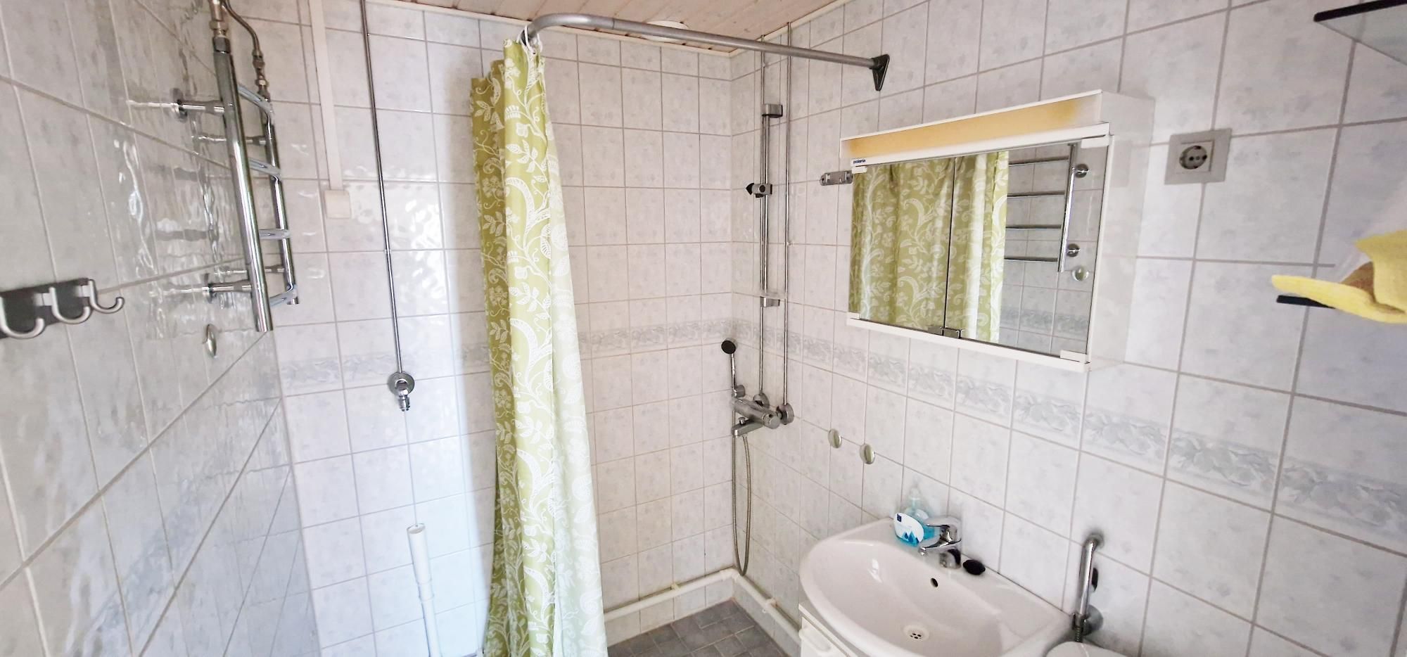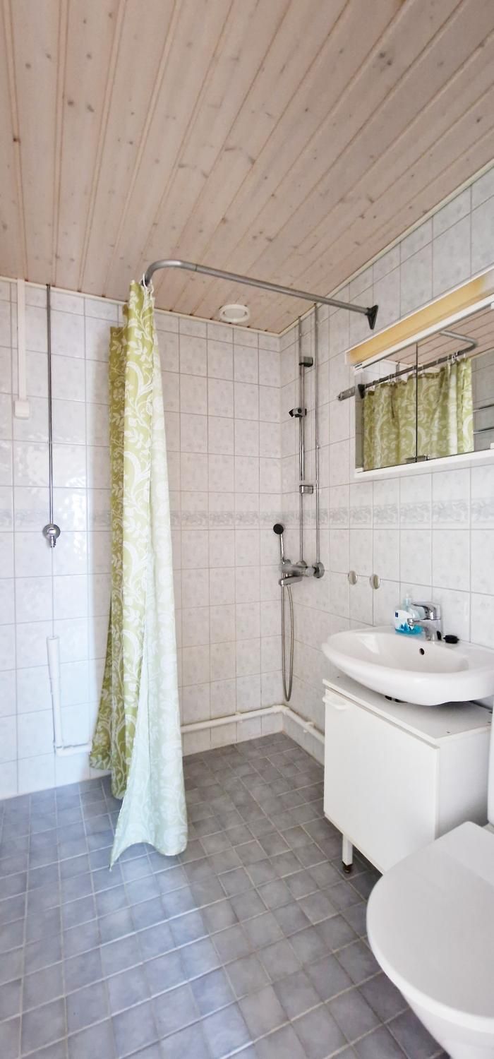 Kaakeloidussa kylpyhuoneessa mm. peilikaappi, suihku ja pesukoneliitäntä. Kylpyhuone uusittu vuonna 2013. Lasitettu parveke. Vaatehuone.