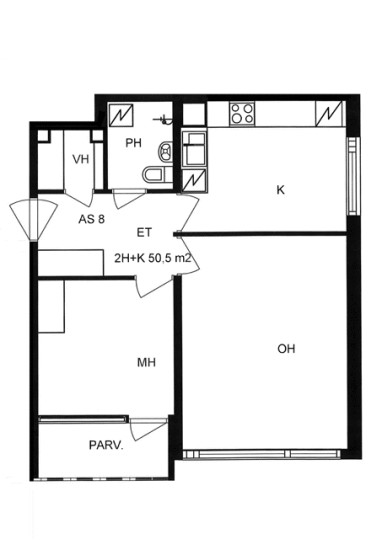 Kerrostalo, 50,5 m², 2h + k + vh + lasitettu parveke