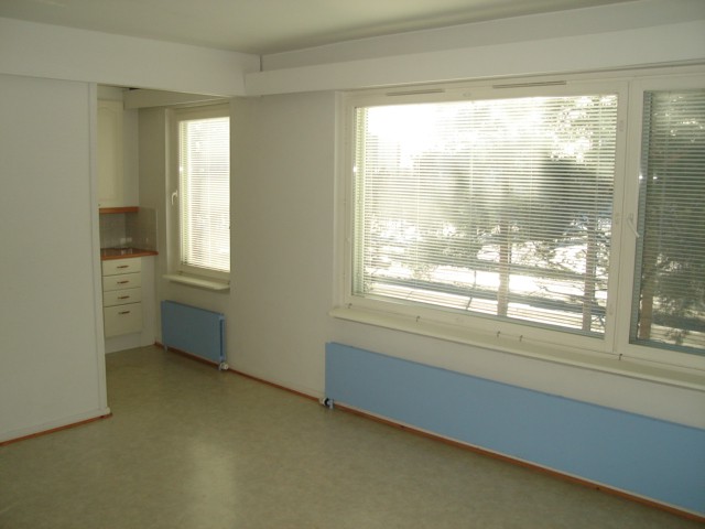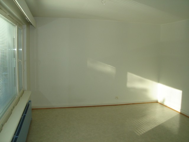 Lattioissa muovimatto, seinät maalipinnoin, ikkunoissa sälekaihtimet.
