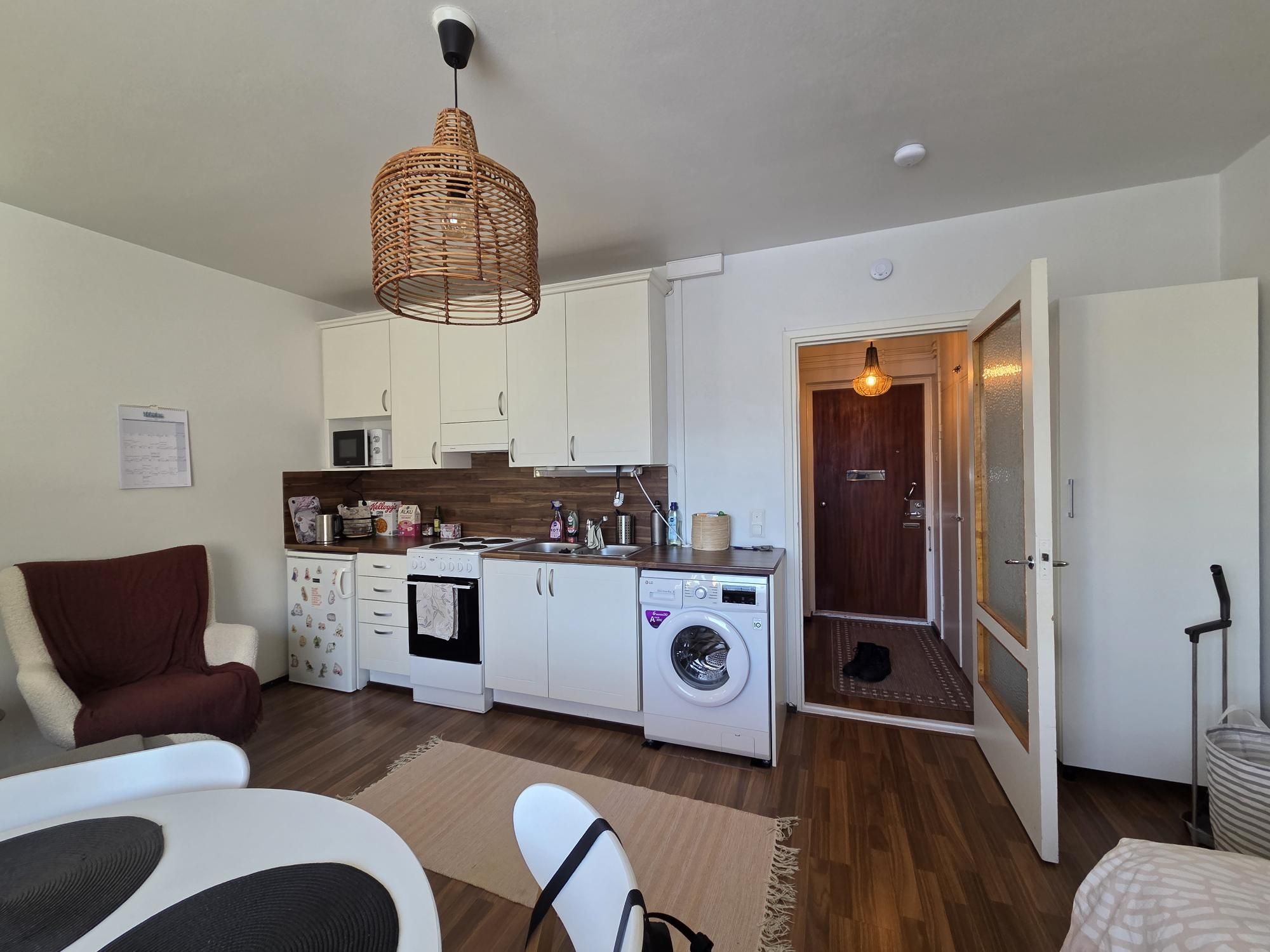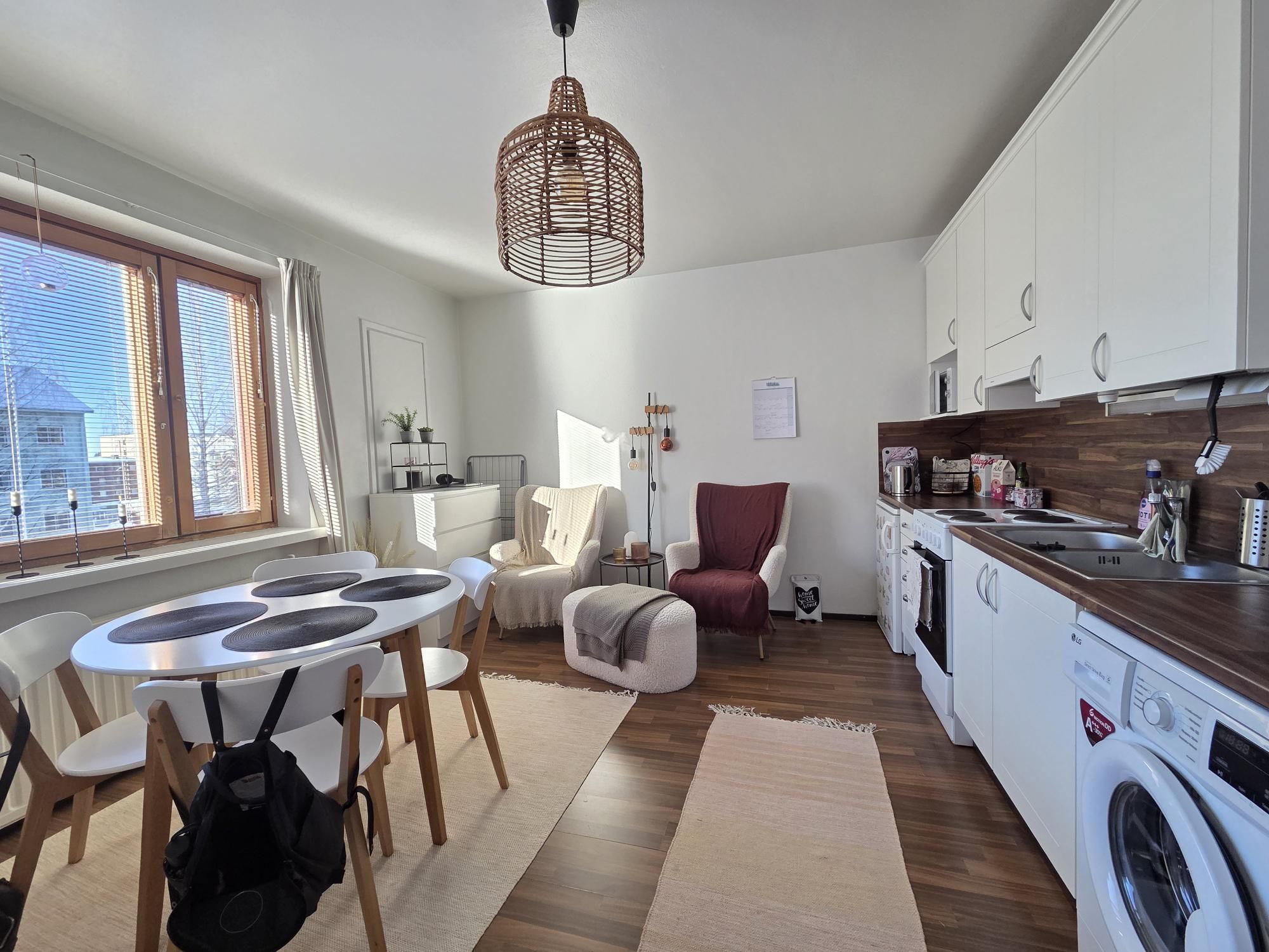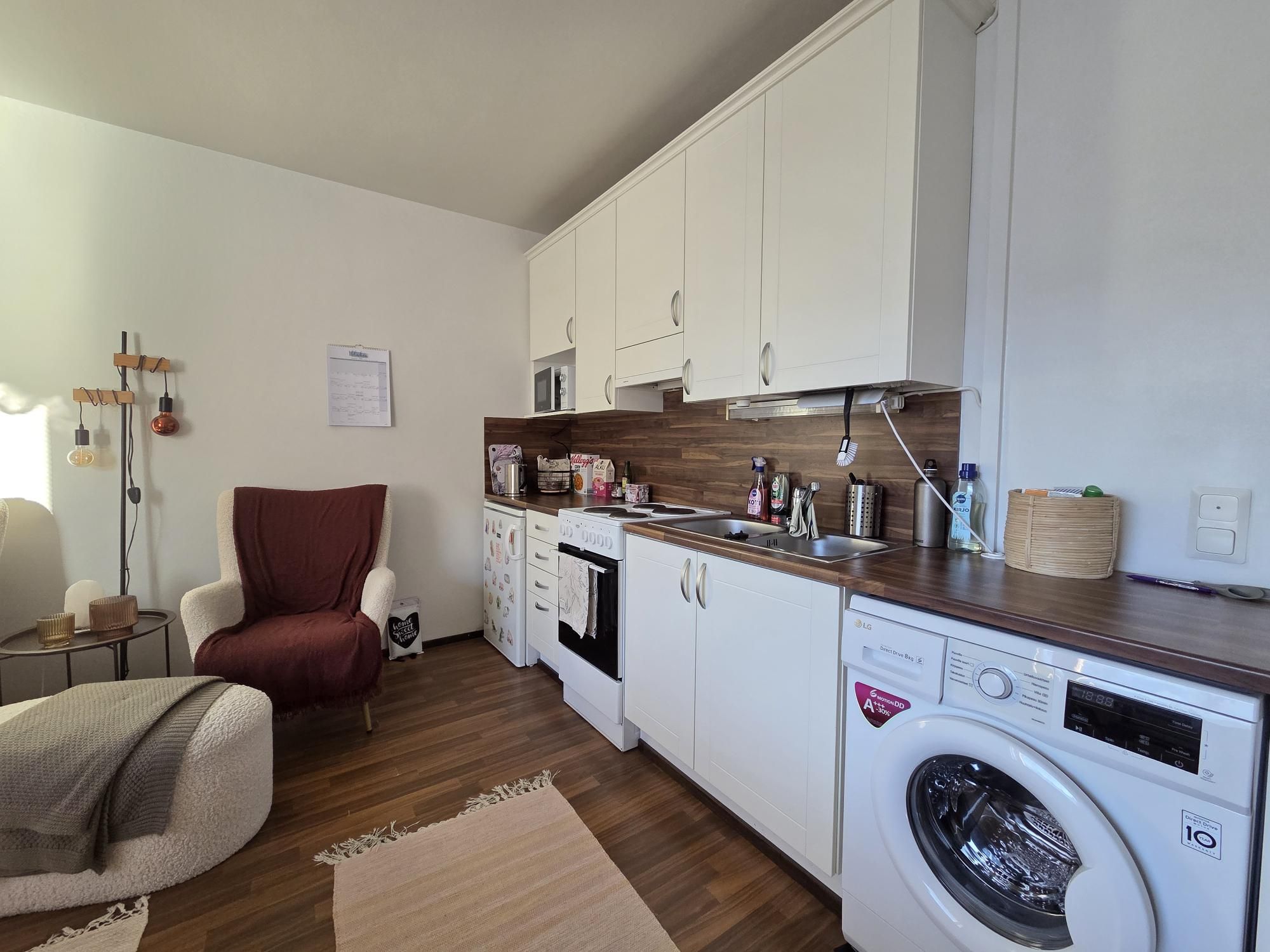 Huoneistossa siistit vaaleaksi maalatut seinät ja kaunis laminaattilattia. Kylpyhuoneessa kaakeliseinät ja suihkukaappi. Kylpyhuoneeseen tulossa pientä remonttia maaliskuun 2026 alussa. Keittiö remontoitu täydellisesti muutama vuosi sitten. Keittiössä pyykinpesukone, joka on vuokralaisen käytössä. Pienet lemmikit neuvoteltavissa tähän asuntoon!