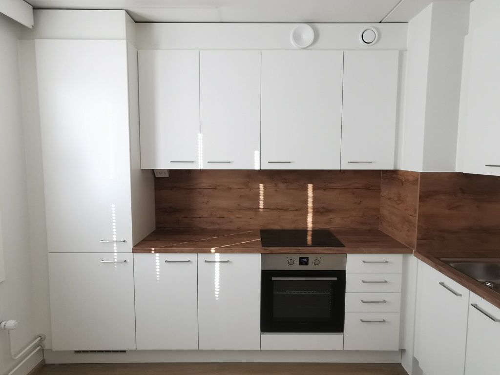 Keittiö äskettäin täysin remontoitu. Mm. integroidut kodinkoneet ja induktioliesi.