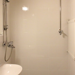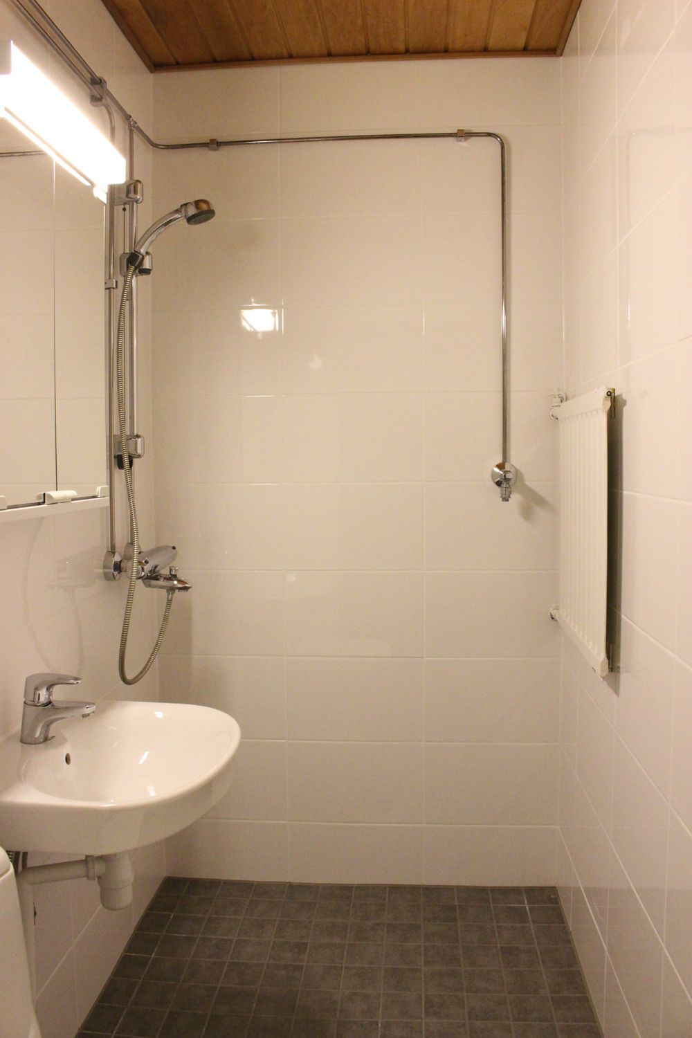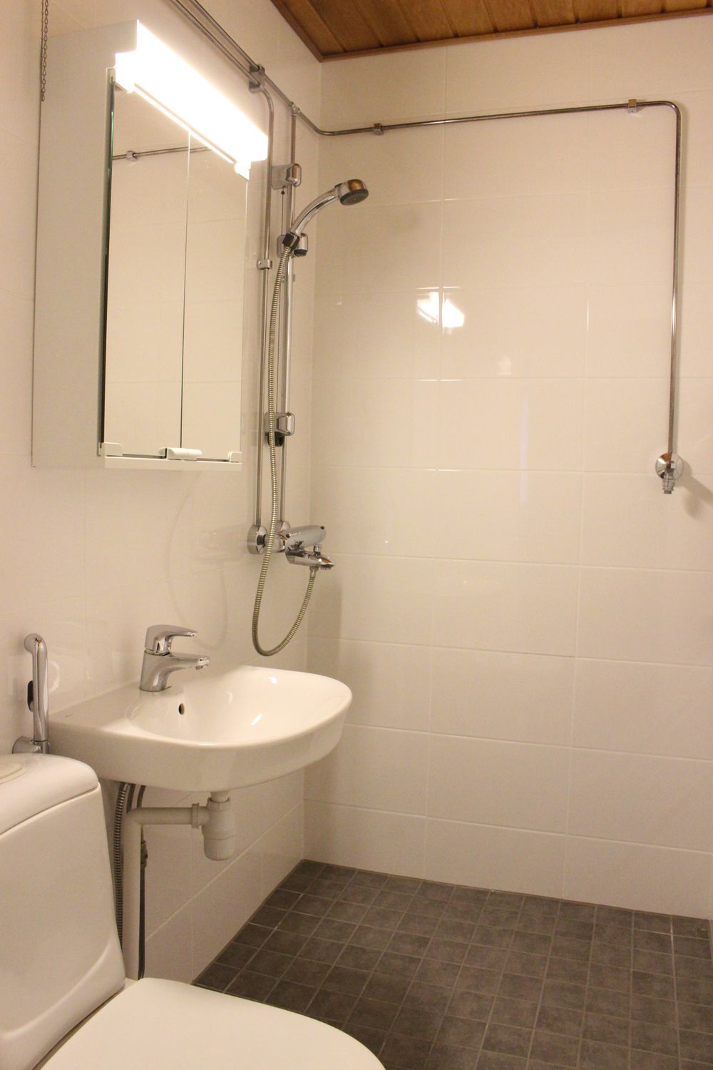 Kylpyhuoneessa pesukoneliitäntä.