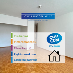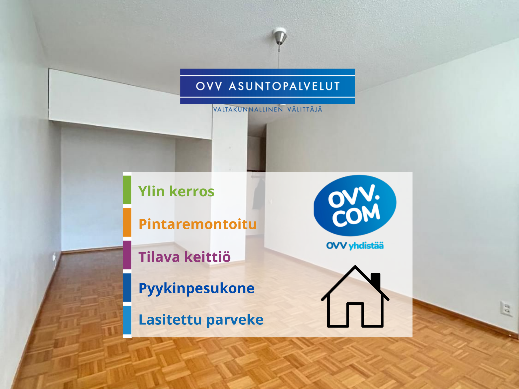Huoneisto on tilava ja sijaitsee ylimmässä kerroksessa. Lisätilan tuntua tuo alkovi. Lasitettu parveke länteen päin. Paljon kaappitilaa. Tässä talossa ei ole hissiä.