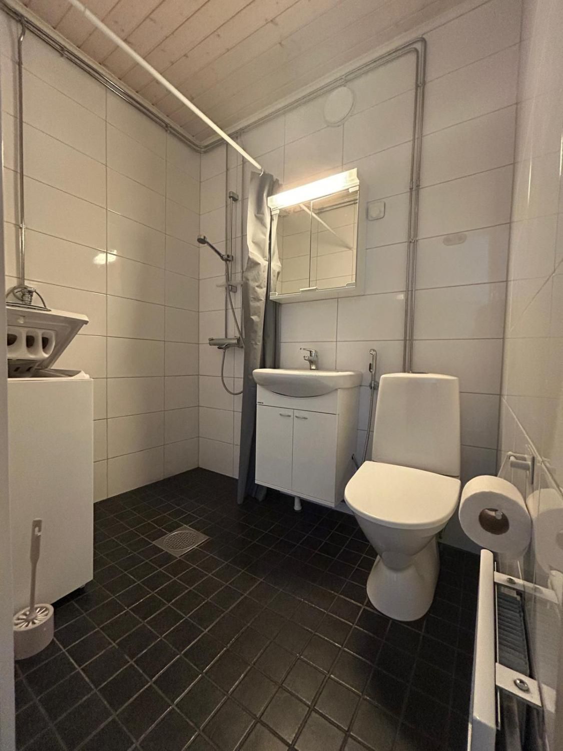 Huoneiston seinät ja katto maalattu valkeaksi. Keittiössä varusteena mm. liesituuletin ja jääkaappipakastin. Keittiö on tilava, sinne mahtuu myös keittiön pöytä. Kylpyhuone laatoitettu ja siellä pyykinpesukone vuokralaisen käyttöön. Kylpyhuoneeseen on pintaremontin yhteydessä asennettu uudet kalusteet.