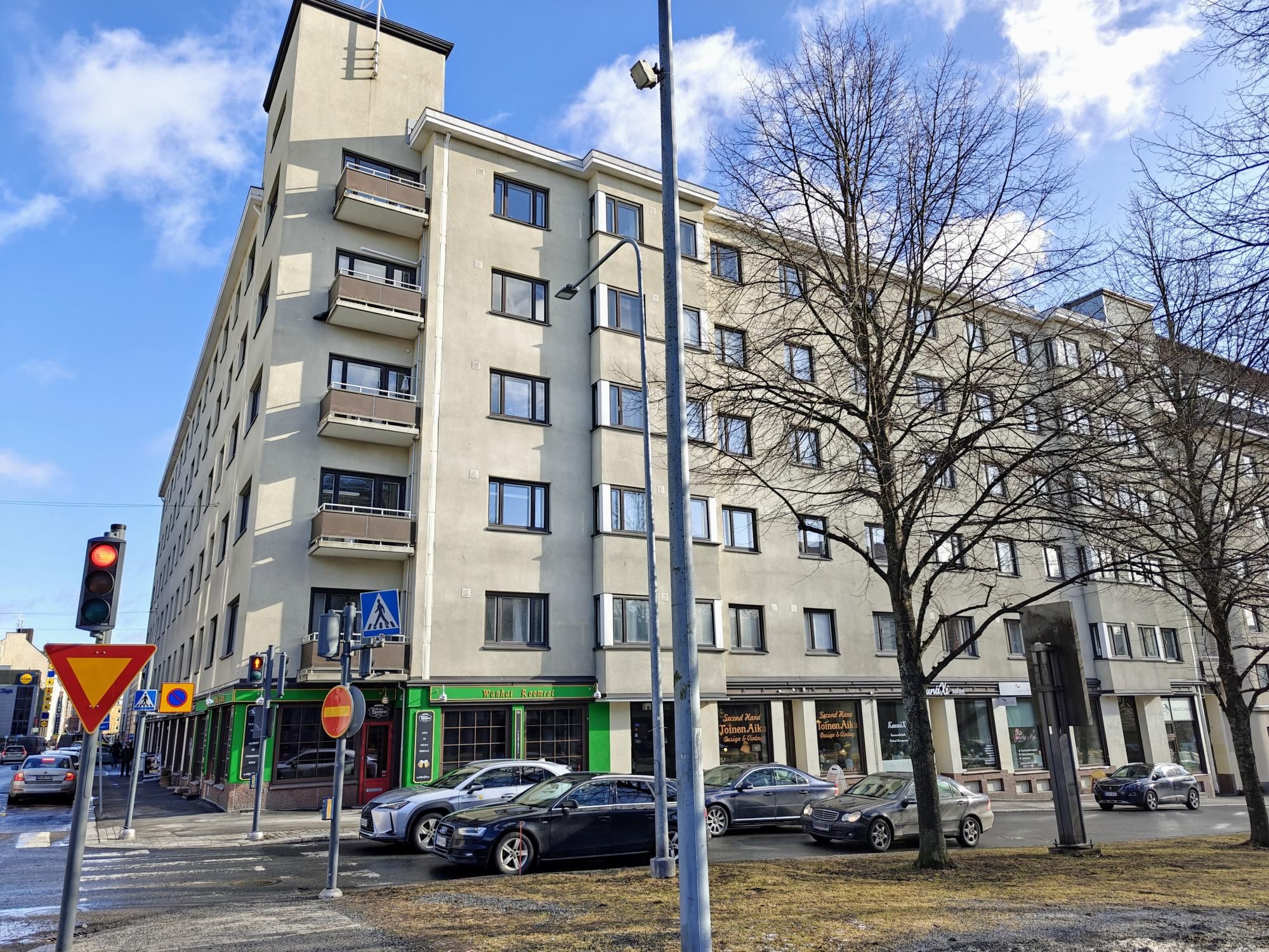 Uusitussa keittiössä hella sekä jääkaappi pakastelokerolla. Kylpyhuone laatoitettu ja löytyy myös tila sekä liitäntä pyykinpesukoneelle. Lattiat vaaleaa laminaattia. Ikkuna Hämeenpuistoon. Leveät ikkunalaudat ja korkea huonekorkeus luovat tunnelmaa tässä v. 1939 rakennetussa kivitalossa. Taloyhtiössä on saunaosasto, pesutupa ja kuivaushuone. Autohallipaikkoja vuokrattavissa isännöitsijän kautta.