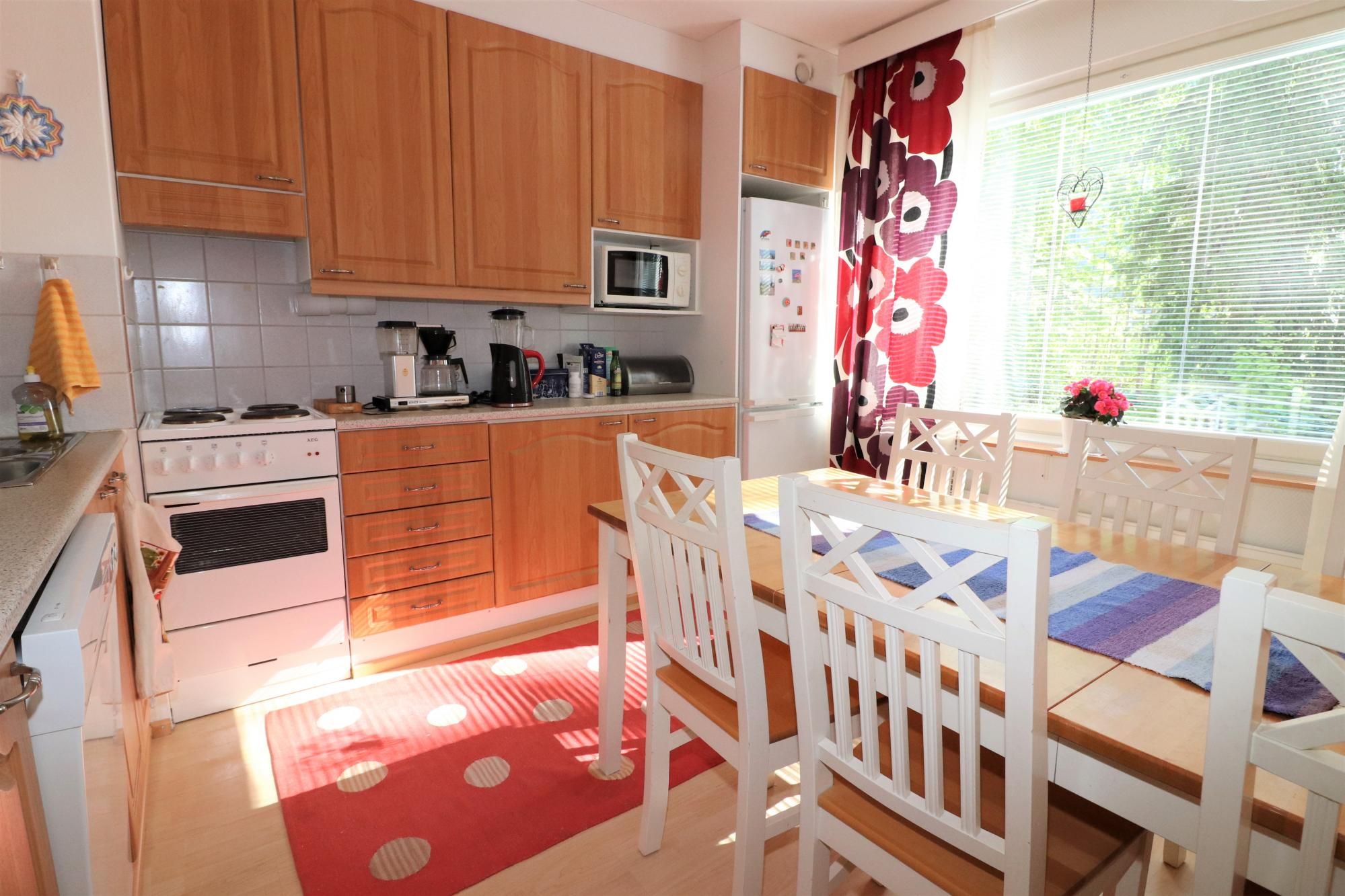 Hyväkuntoinen ja valoisa kaksio lähellä palveluita Puijonlaaksossa! Heti eteisestä huomaa, että asunnossa on käytetty neliöt hyvin, sillä asunto on todella tilavan tuntuinen. Kylpyhuoneessa liitäntä sekä tilaa pesukoneelle. Siistissä keittiössä iso jääkaappi/pakastin, astianpesukone sekä tilaa isommallekin pöydälle. Asunnossa on vaaleat laminaattilattiat sekä vaaleat seinät. Makuuhuoneessa hyvin kaappitilaa, mutta asunnossa on myös erittäin tilava vaatehuone. Lasitettu parveke on sisäpihalle päin. Puijonlaaksosta on lyhyt matka yliopistolle, ammattikorkeakouluille sekä keskustaan. Vuokrataan mielellään pidemmäksi aikaa, kuitenkin vähintään vuodeksi.