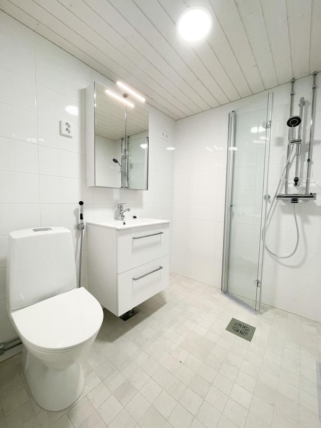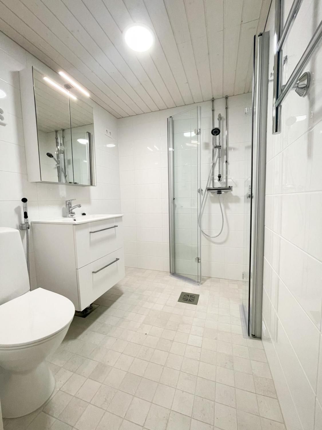 Kylpyhuone on uusittu täysin putkiremontin yhteydessä.
