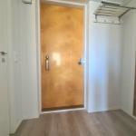 Keittokomerossa jääkaappi pakastelokerolla ja liesi. Huoneistossa asukkaan käytössä pyykinpesukone.