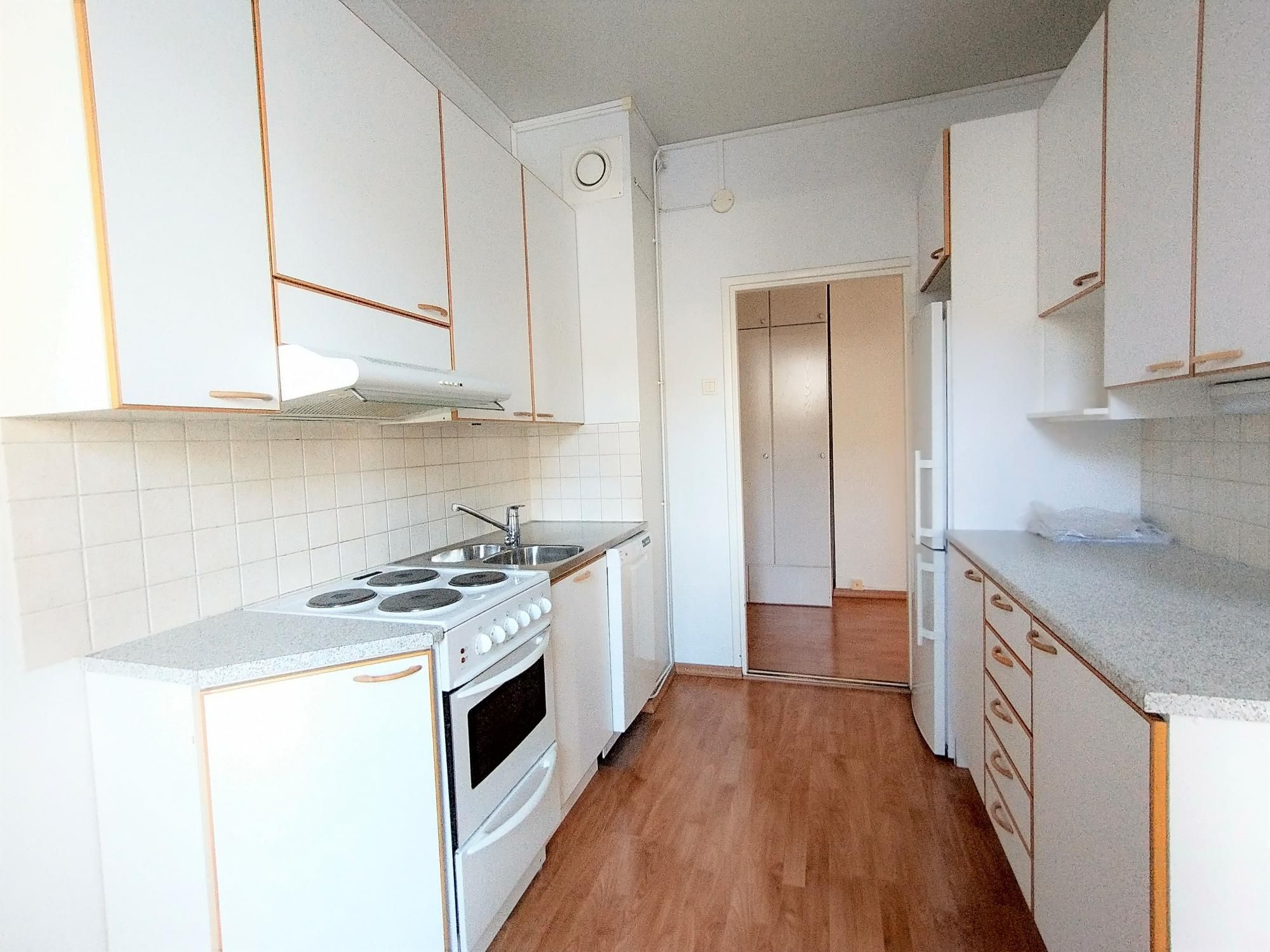 Lattiat laminaattia ja seinät maalia. Keittiössä vaaleat keittiönkaapistot, jääkaappipakastin ja astianpesukone helpottamaan arkea! Kaakeloidussa kylpyhuoneessa on liitäntä pyykinpesukoneelle. Molemmat asunnon huoneet ovat tilavia.