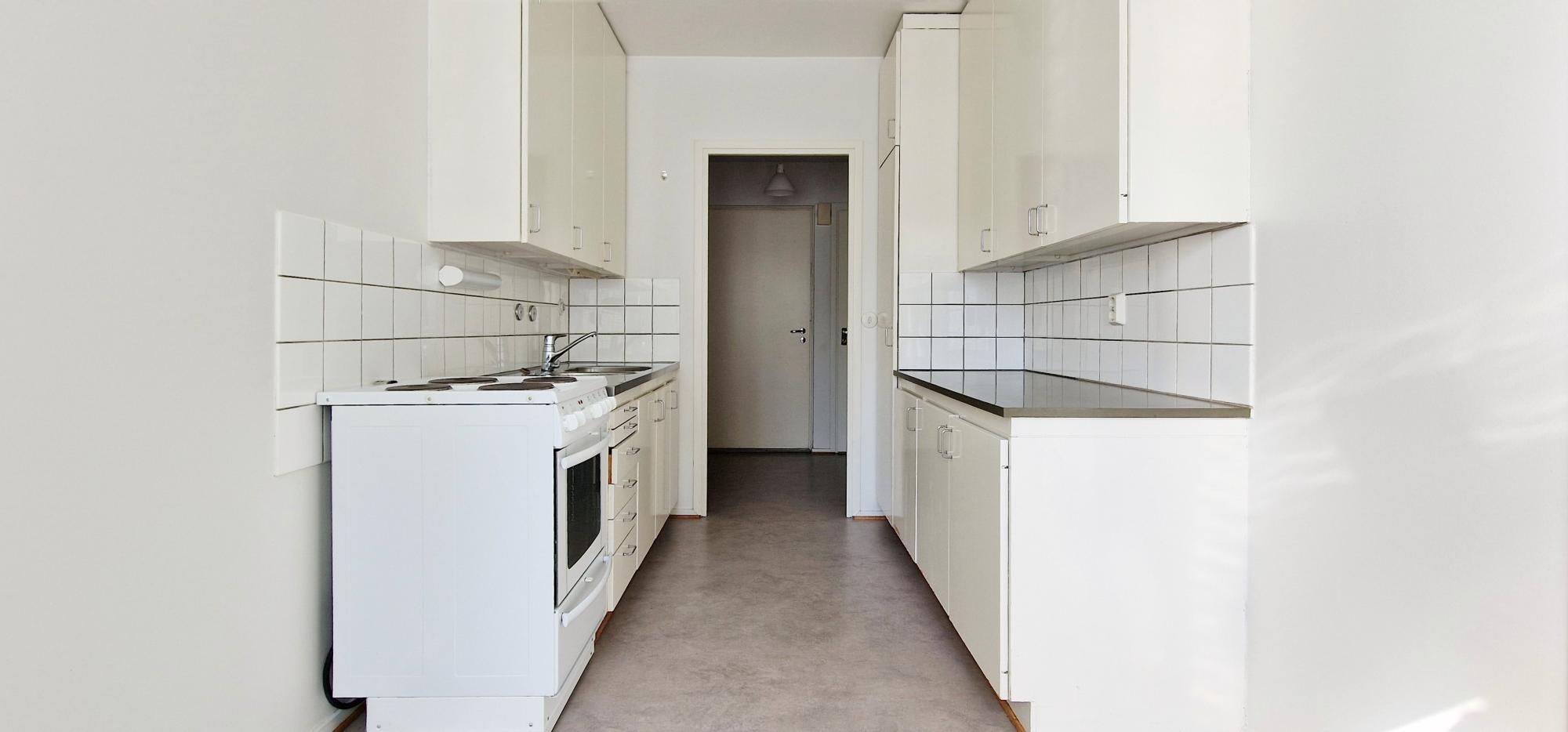 Asunnon lattia uusittu ja seinäpinnat maalattu.