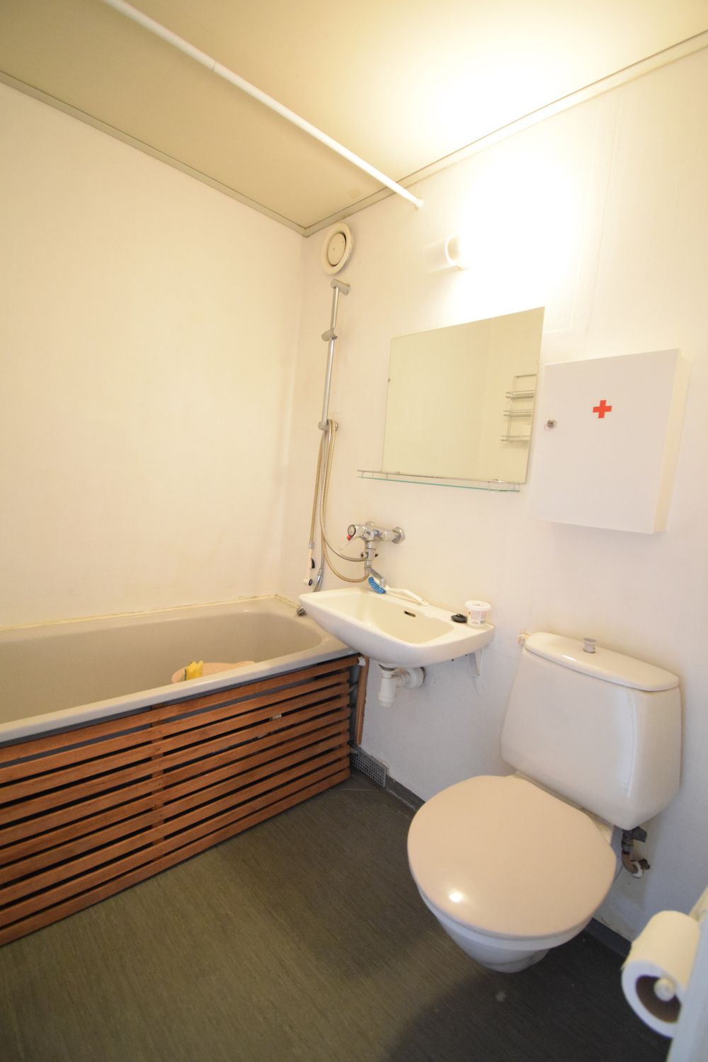Asunto kerrostalon ensimmäisessä kerroksessa. Eteisessä säilytyskaapistot. Kylpyhuoneessa amme.