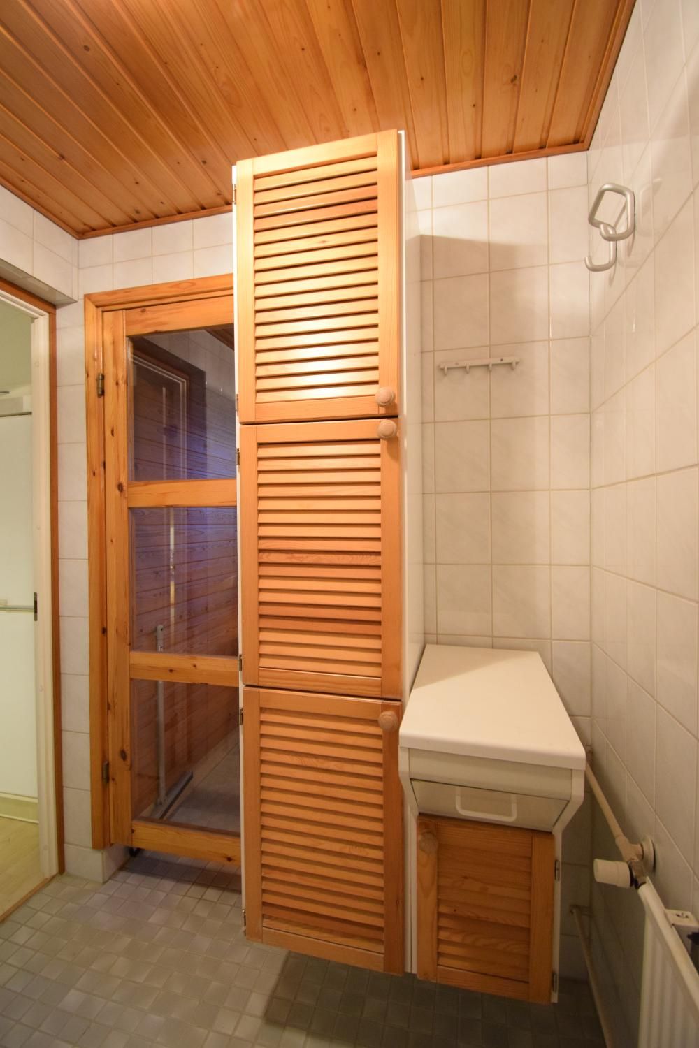 Asunnon lattiamateriaalit ovat parkettia ja laminaattia, ja kosteissa tiloissa kaakelia. Pesuhuoneessa on tila 60 cm leveälle pesukoneelle.