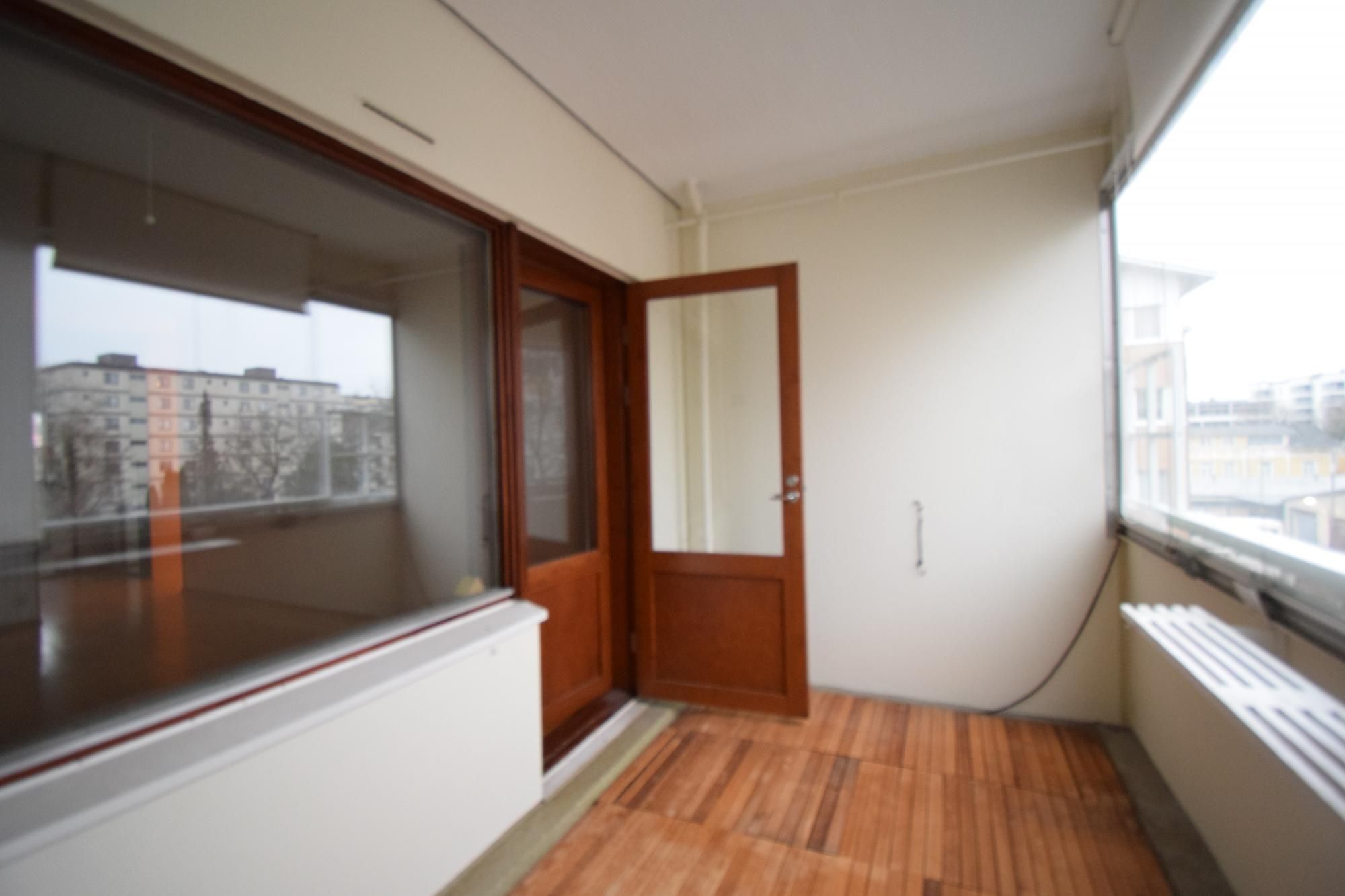 Asunnosta on näkymät suojaiselle sisäpihalle, ja lasitettu parveke tarjoaa mukavan lisätilan ympärivuotiseen käyttöön.