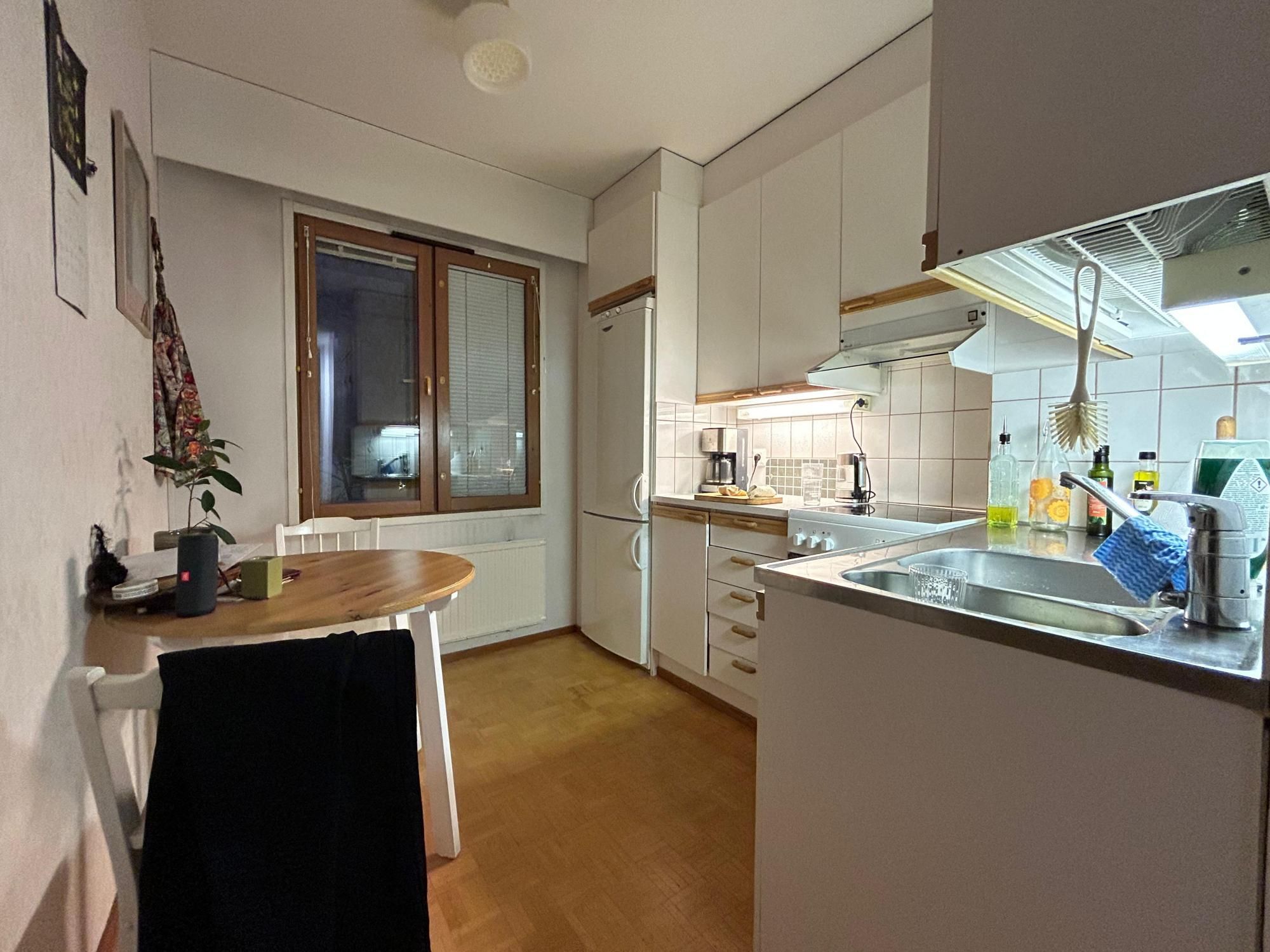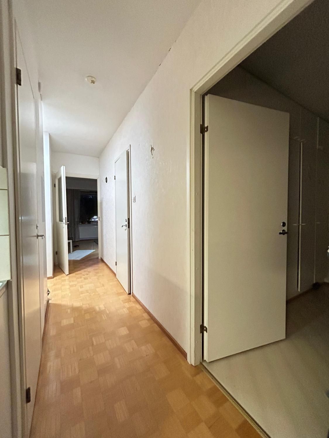 Lattiat mosaiikkiparkettia, makuuhuoneen lattia muovia, seinät maalatut.. Keittokomeron mahtuu pieni pöytä ja komerossa on vaaleasävyiset kaapistot. Läpitalon huoneisto, jonka parveke on länteen päin. Kylpyhuone kaakeloitu ja pesukoneliitäntä löytyy. Huom! Autokatospaikka sis.vuokraan, mutta katospaikan lämmityksestä veloitetaan erikseen. Oma vaatehuone. Pohjaratkaisultaan asunto sopii myös kaveruksille. Kaksi erillistä huonetta.