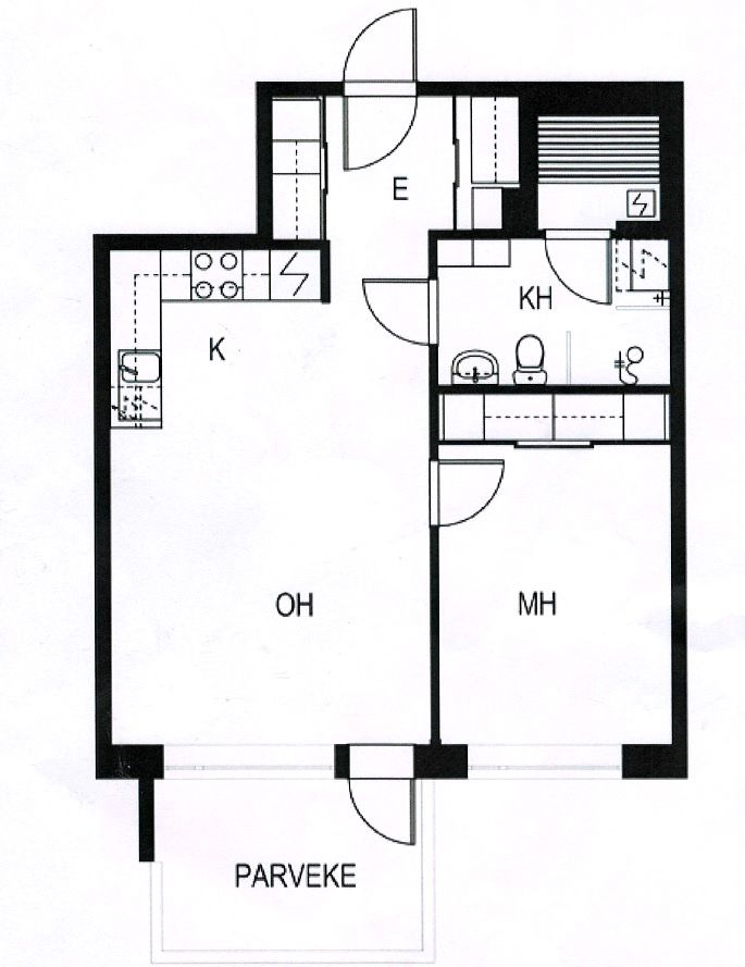 Kerrostalo, 46,5 m², 2h + ak + s + lasitettu parveke