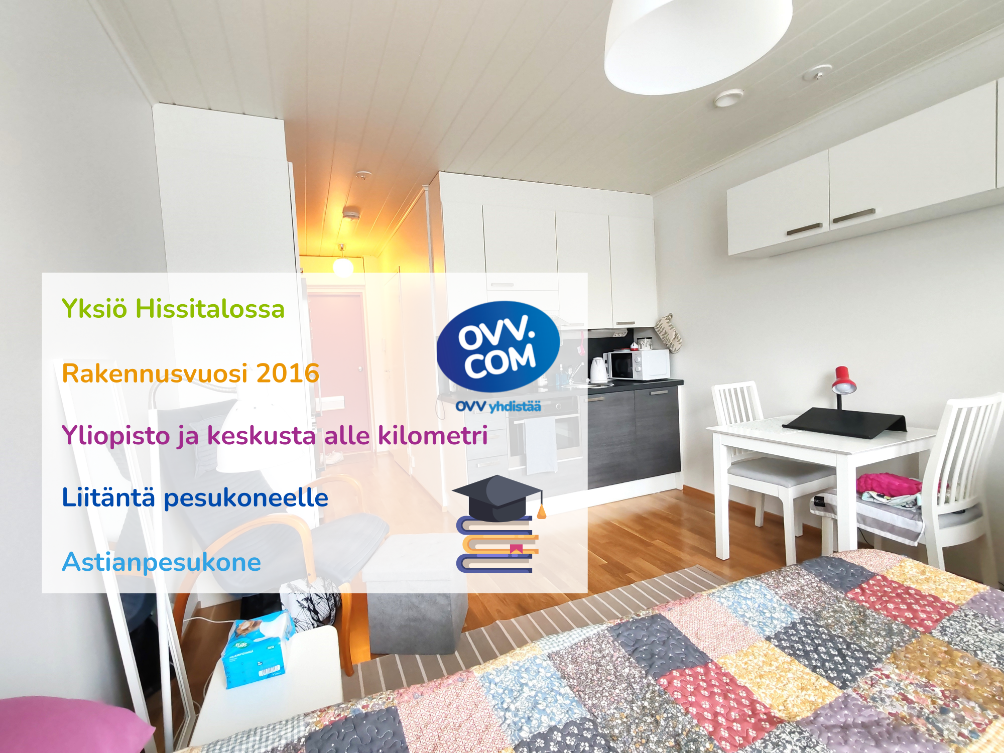 Vuonna 2016 valmistunut kaunis yksiö keskustan hissitalosta aivan yliopiston ja keskustan palveluiden läheisyydestä.
