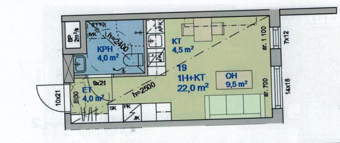Kerrostalo, 22 m², 1h + tupakeittiö