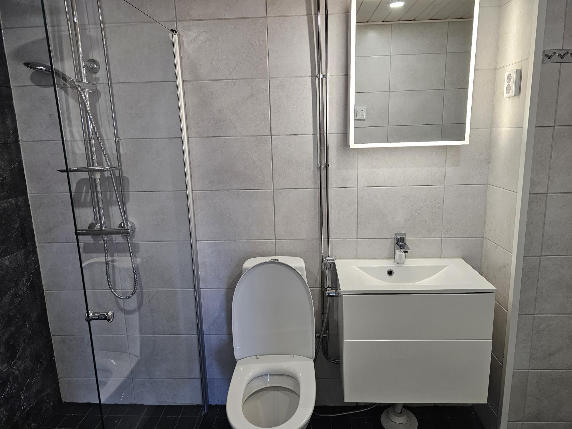 Asunnossa on keittokomero sekä laatoitettu kylpyhuone pesukonevalmiudella. Pohjaratkaisu on käytännöllinen ja tilat helposti kalustettavissa.