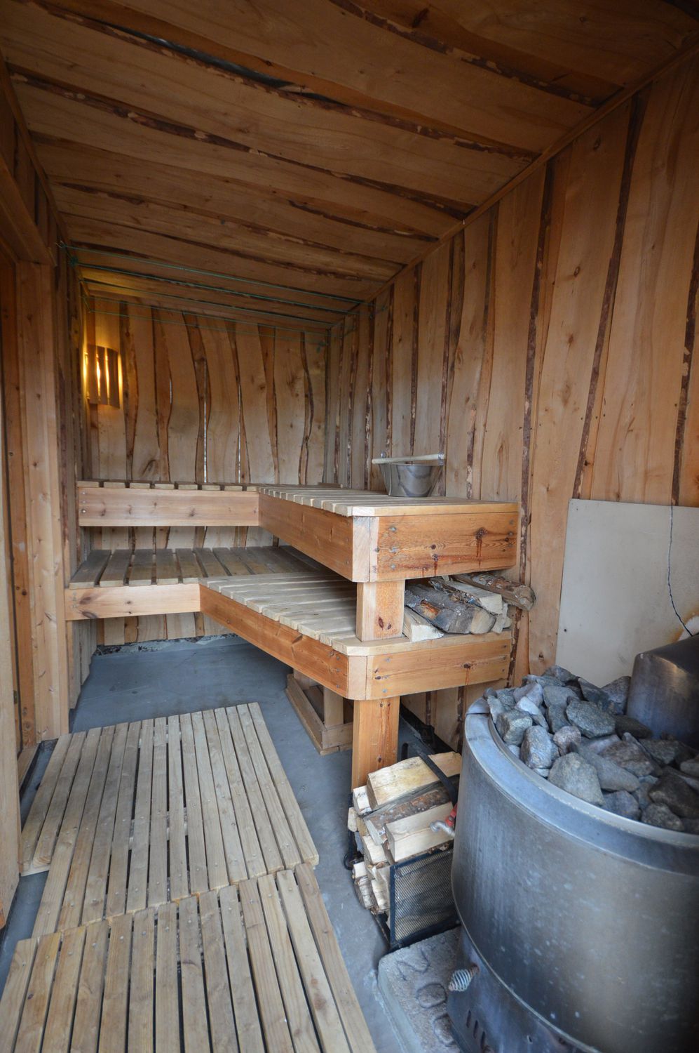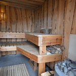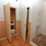 Asunnossa on tilava vaatehuone, pukuhuone, puulämmitteinen tyylikäs erähenkinen sauna, josta käynti suoraan katetulle ulkoterassille.