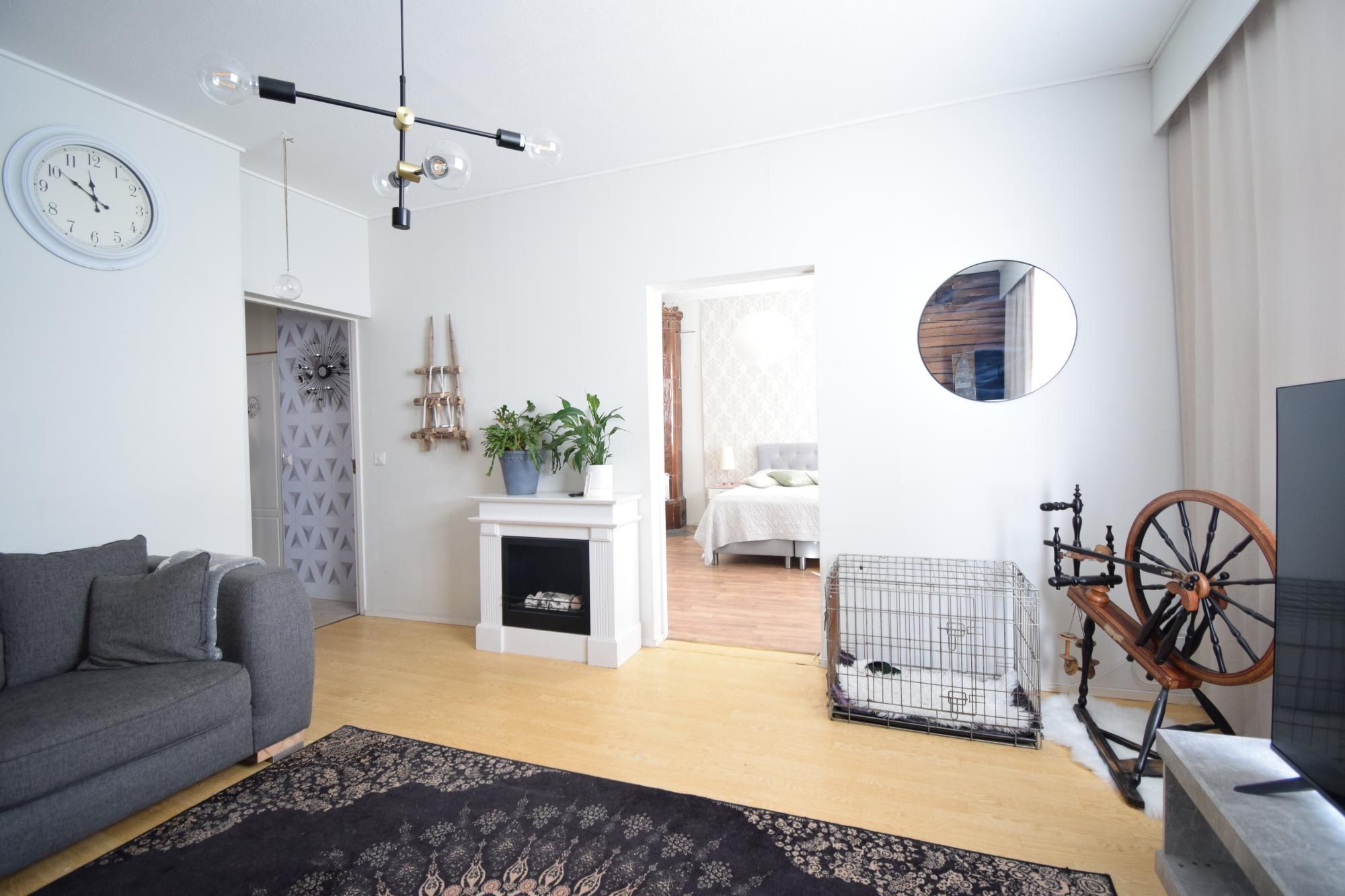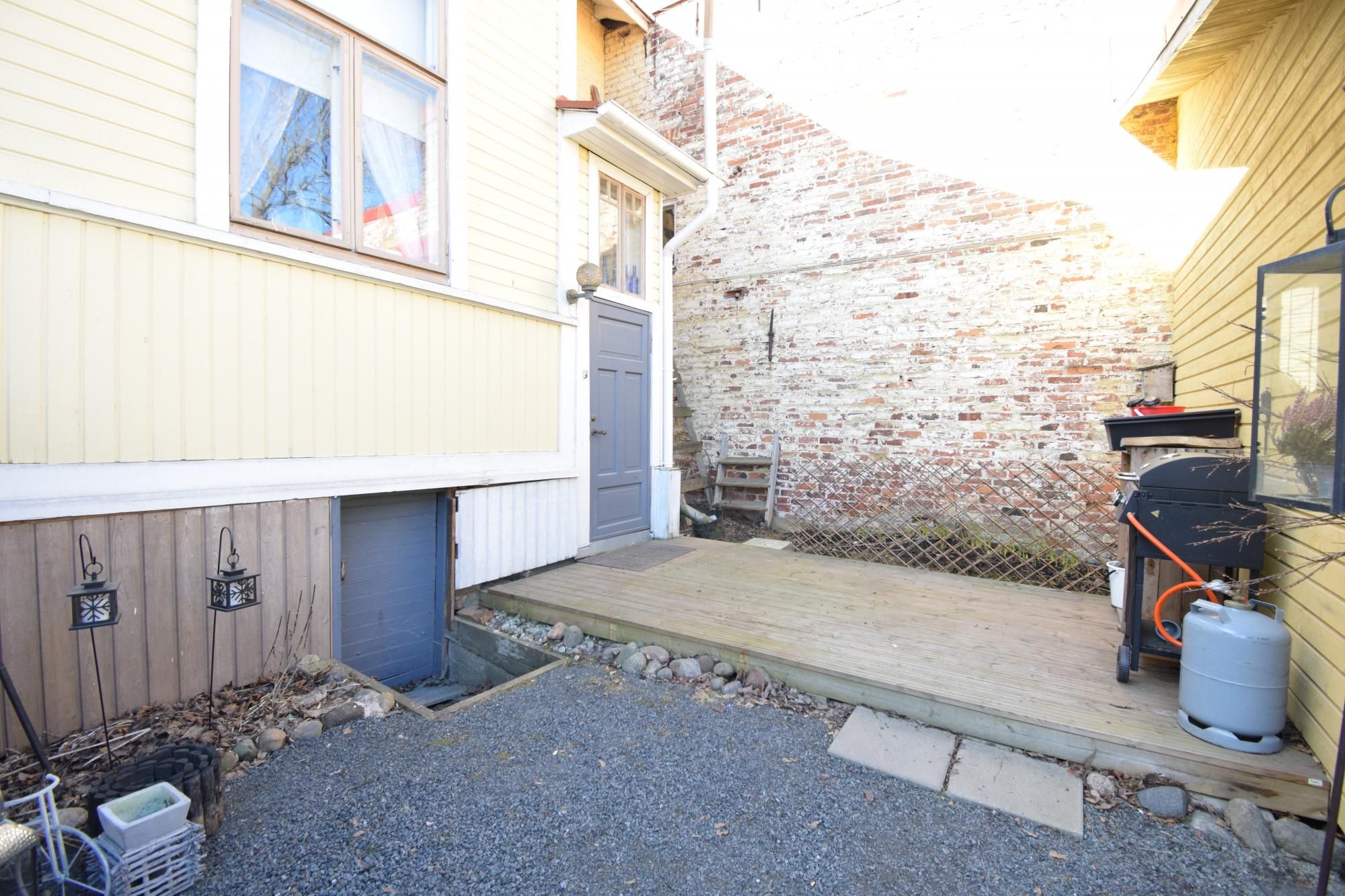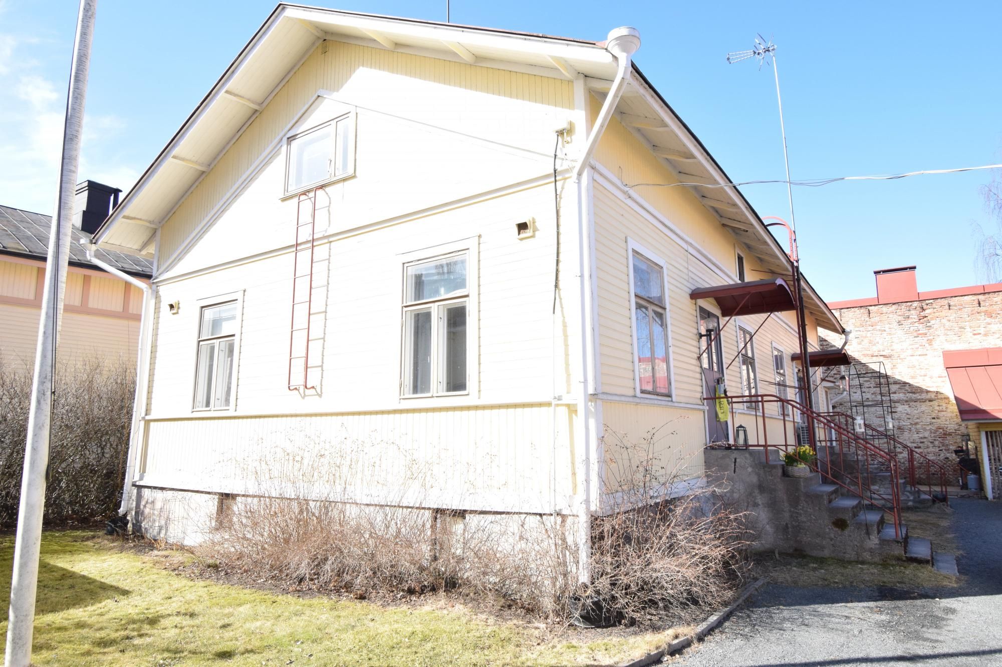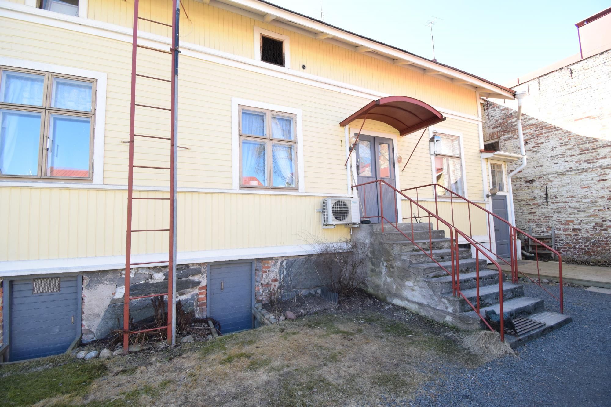 Suojaisalla sisäpihalla iso puutaloasunto kauppakeskus Puuvillan palveluiden ja Kokemäenjoen läheisyydessä.