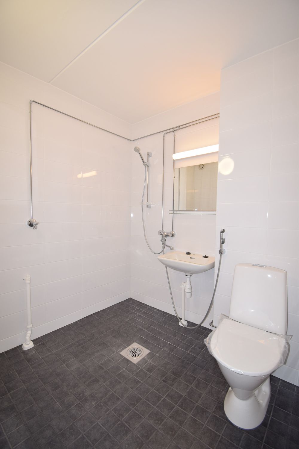Huoneistojen märkätilat: osakkaiden tekemien remonttien yhteydessä alkuperäisten seinäkaivojen muuttaminen lattiakaivoiksi+muut yhtiön laajennetun kunnossapitovastuun mukaiset työt, vesieristeiltään puutteellisten ja alkuperäisillä pinnoitteilla olevien kylpyhuoneiden korjaus