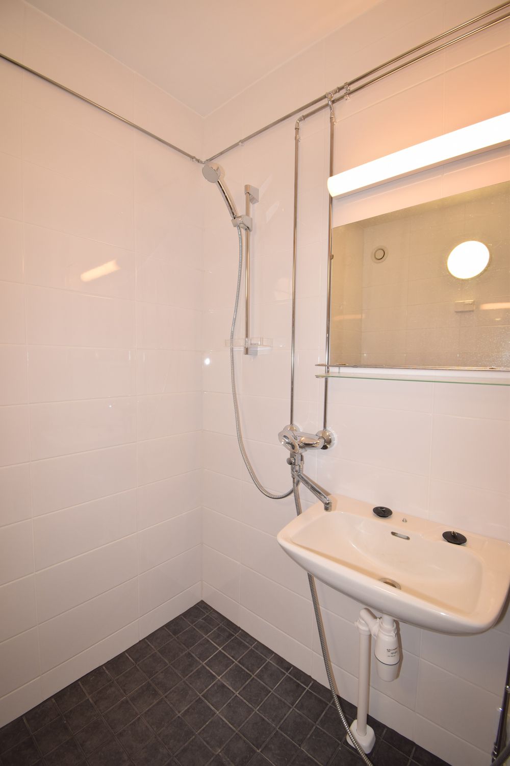 Kylpyhuone on täysin remontoitu. Upean vaalea ja kaakeloitu, hyvä tila pyykinpesukoneelle. Huoneistokohtainen varasto.