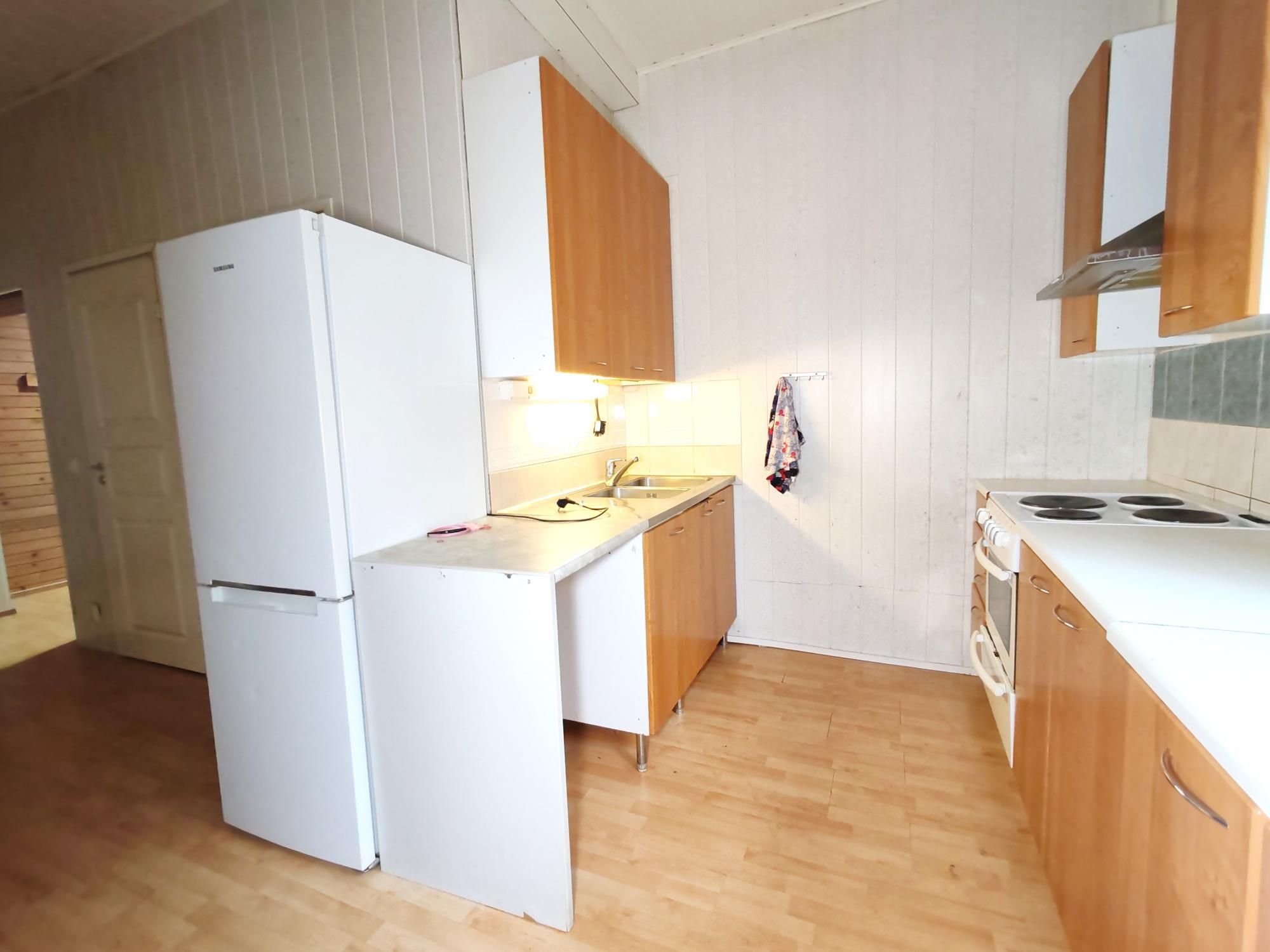 Huoneistossa on 3 makuuhuonetta, keittiö, erillinen wc, kylpyhuone ja sauna. Tilavassa keittiössä on jääkaappipakastin. Oma piha metsään päin. Vuokraan sisältyvät: sähkö ja jätehuolto. Huoneistossa on liitäntä pyykinpesukoneelle.