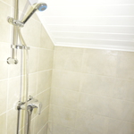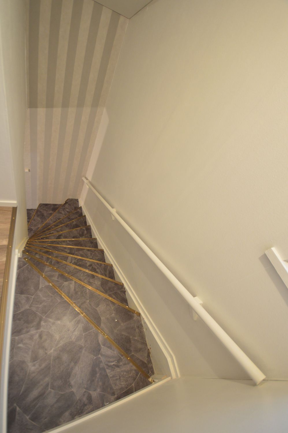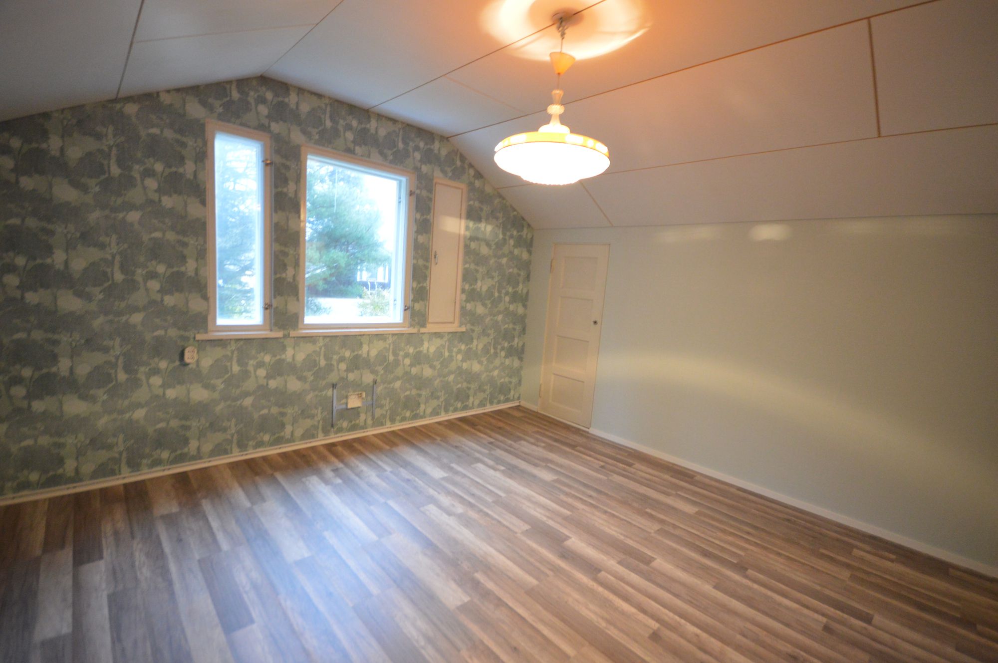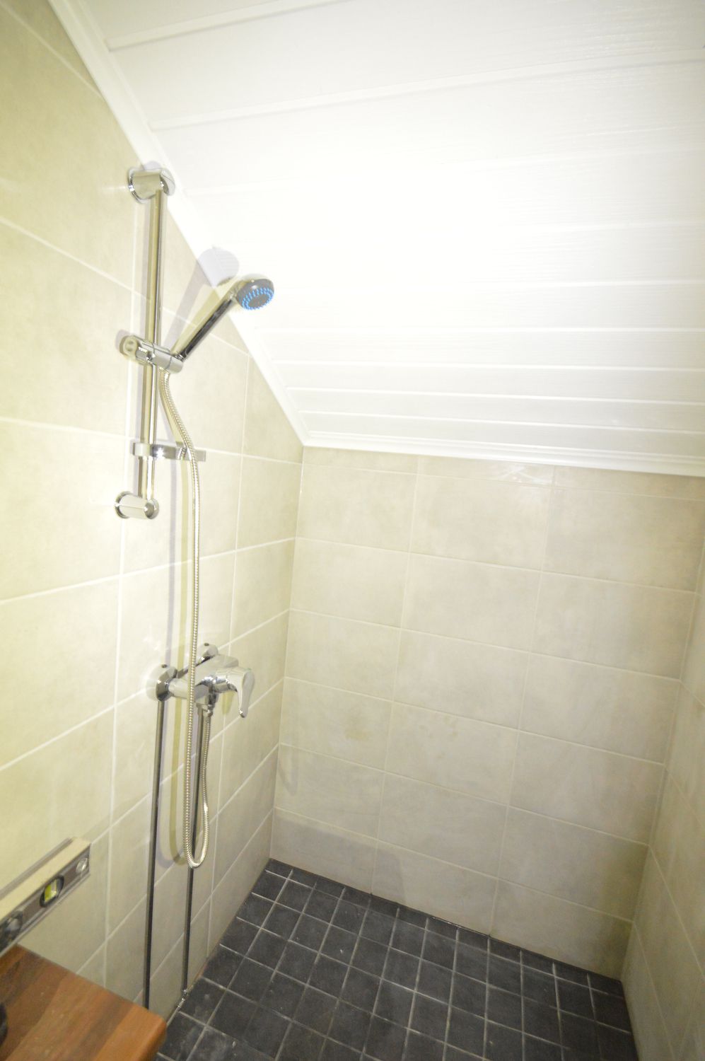 Asunnon yläkerrassa päämakuuhuone, pienempi makuuhuone ja suihku + WC tila, jossa lattialämmitys. Yläkerrassa matalaa tilaa molemmin puolin säilytykseen. Talon alakerrassa mm. sauna ja varasto/työ-tilaa, joita ei ole laskettu neliöihin. Pyykinpesukoneelle paikka alakerrassa. Kuivausrumpu valmiina.