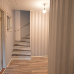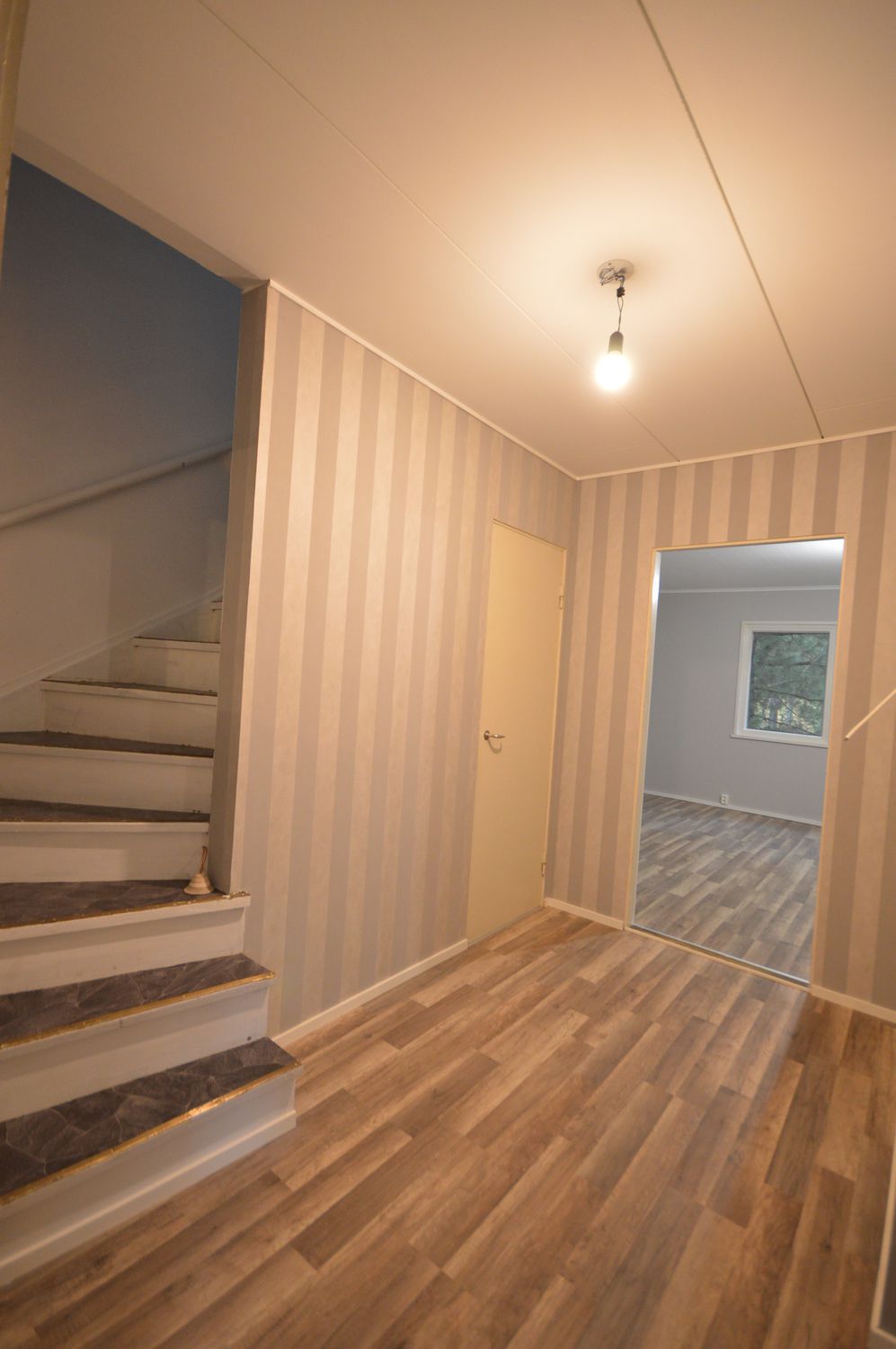 Iso kuisti heti sisään tultaessa ja hyvä kokoinen eteinen. Alakerrassa WC.