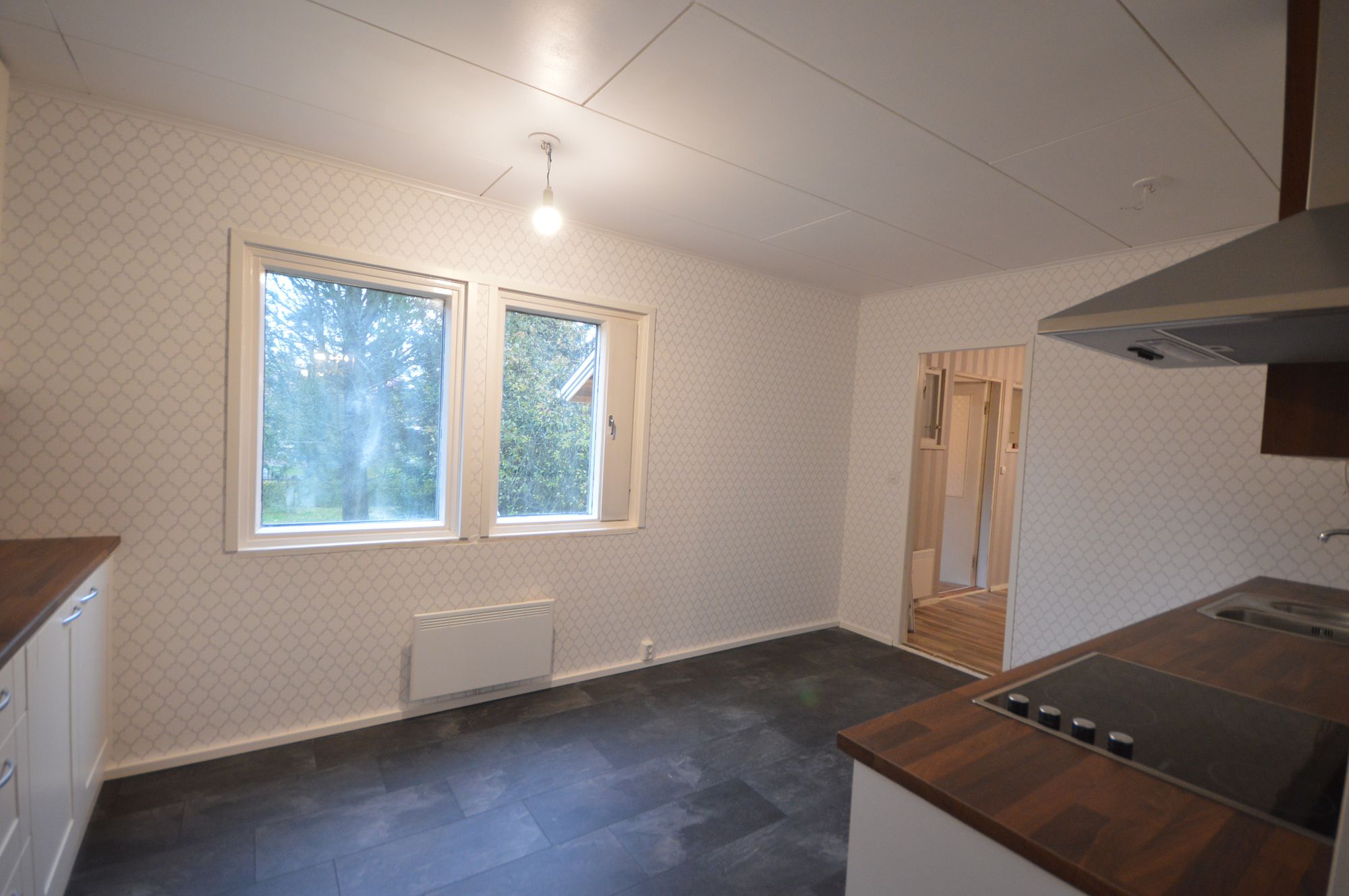 Keittiöön mahtuu ruokapöytä tai vaihtoehtoisesti viereistä huonetta voi käyttää ruokailuhuoneena.