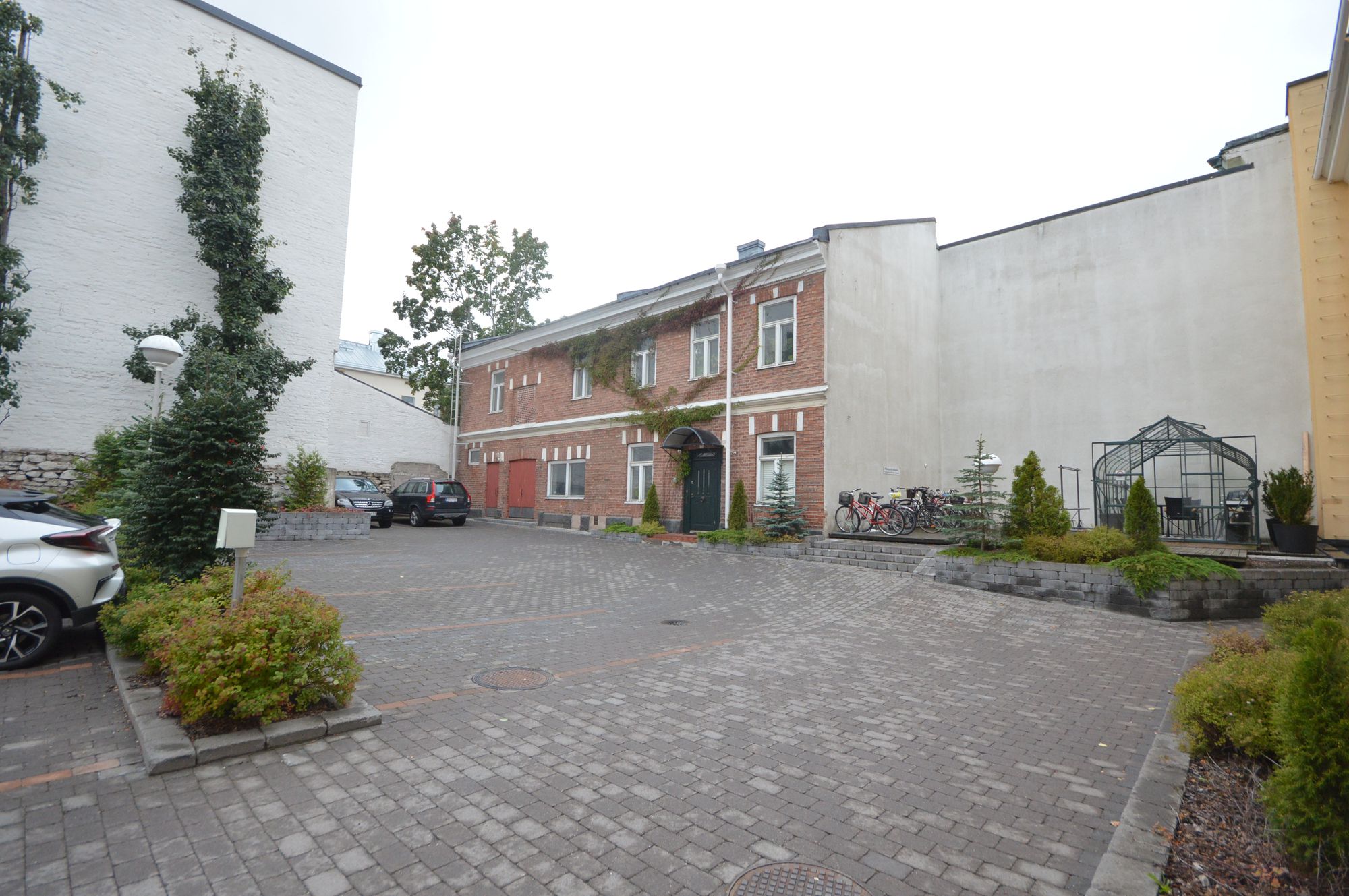 Kylpyhuoneessa peilikaappi, allaskaappi ja pesukoneliitäntä. Autopaikka on saatavilla suojaisalta sisäpihalta.