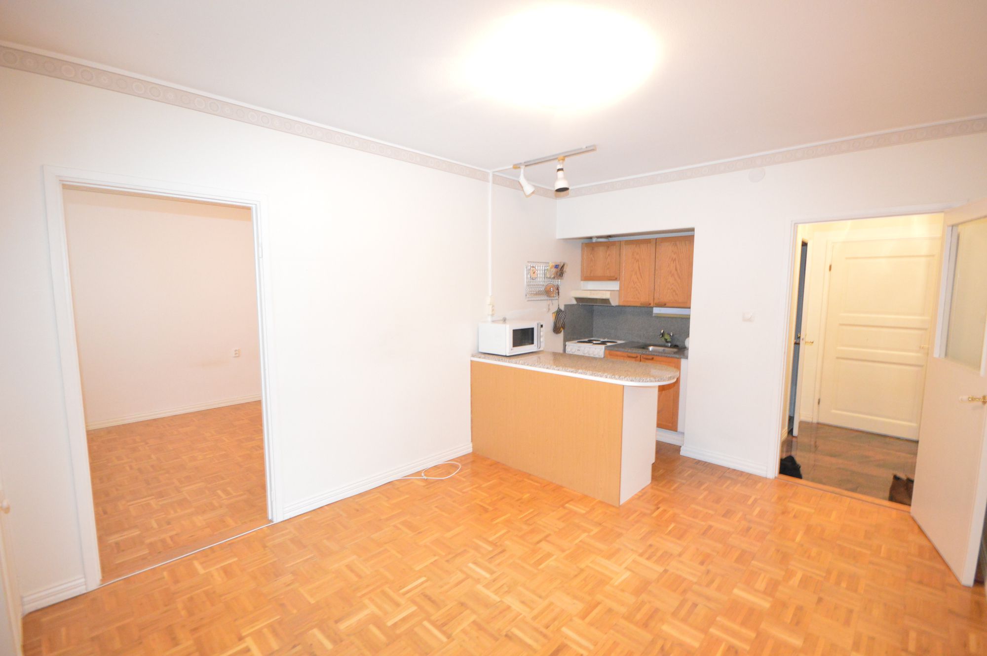 Keittiössä jääkaappi, liesi, liesituuletin. Saareke jakaa tilaa mukavasti. Makuuhuoneessa paljon kaappitilaa valmiina ja tilaa isollekin sängylle.