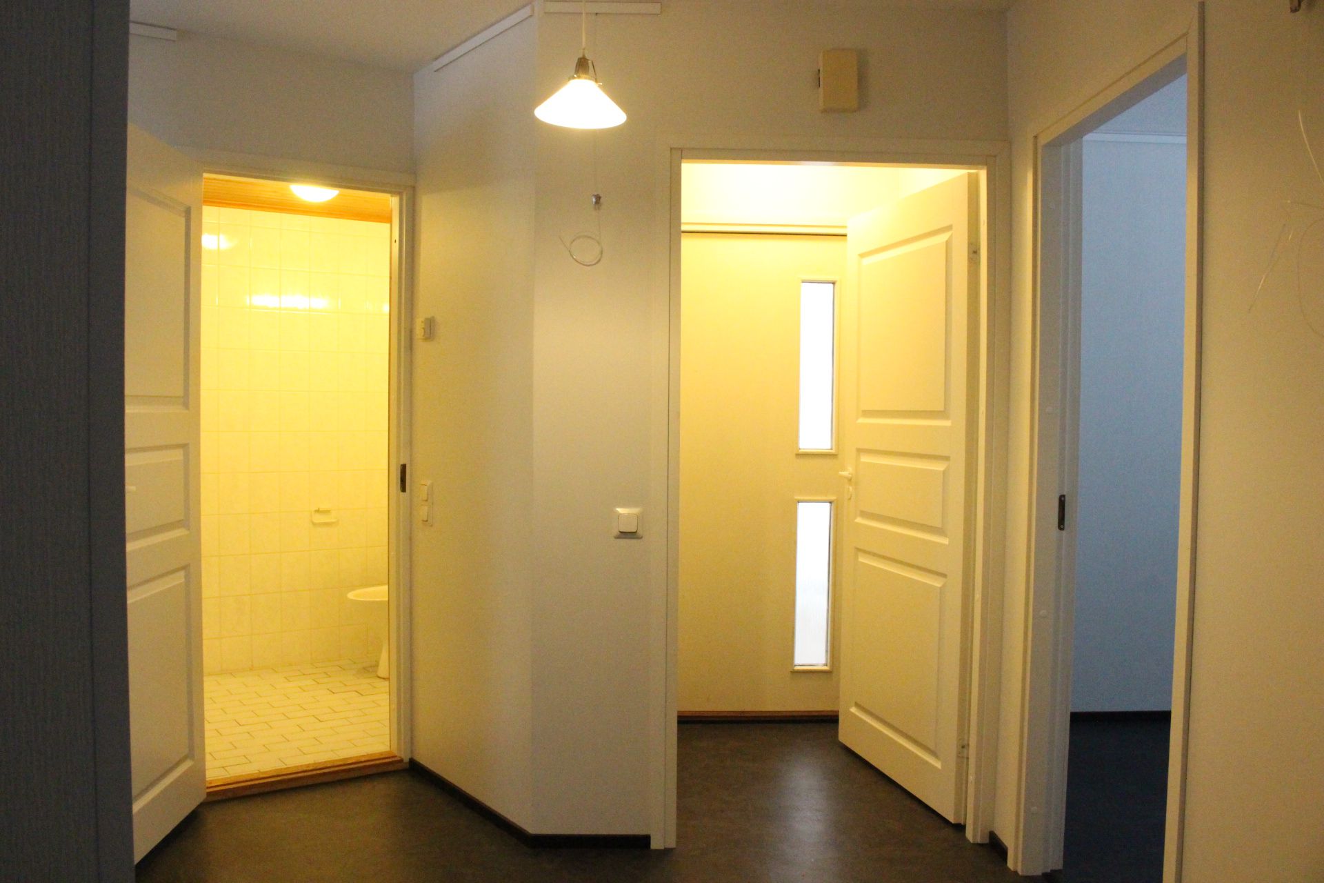 Laminaattilattiat, seinät tapetti- ja maalipinnoin.