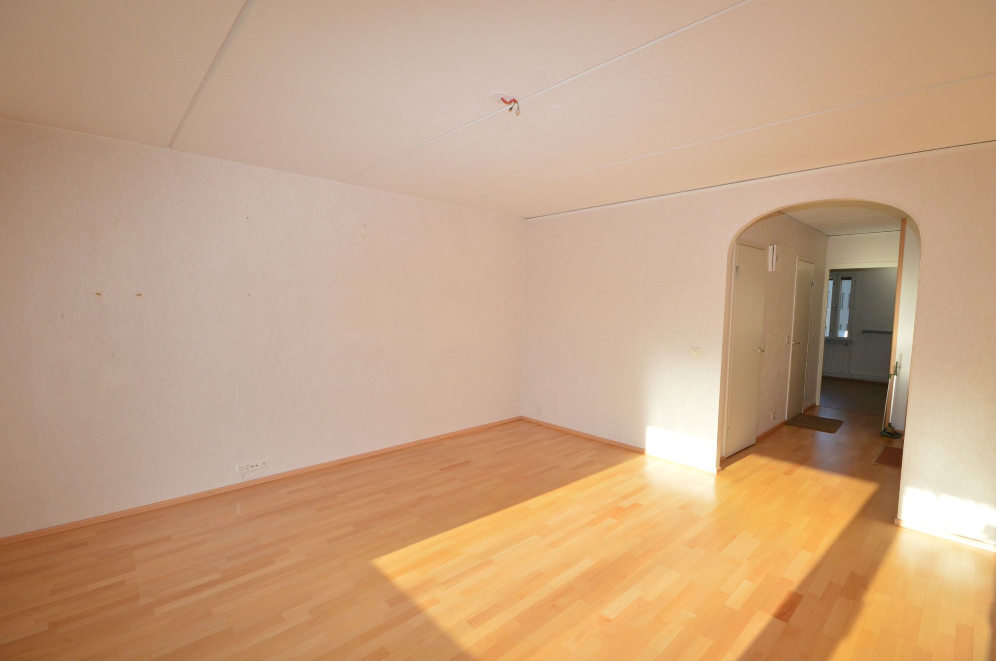 Lattiat parkettia ja keittiössä sekä makuuhuoneessa muovimattoa.