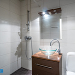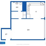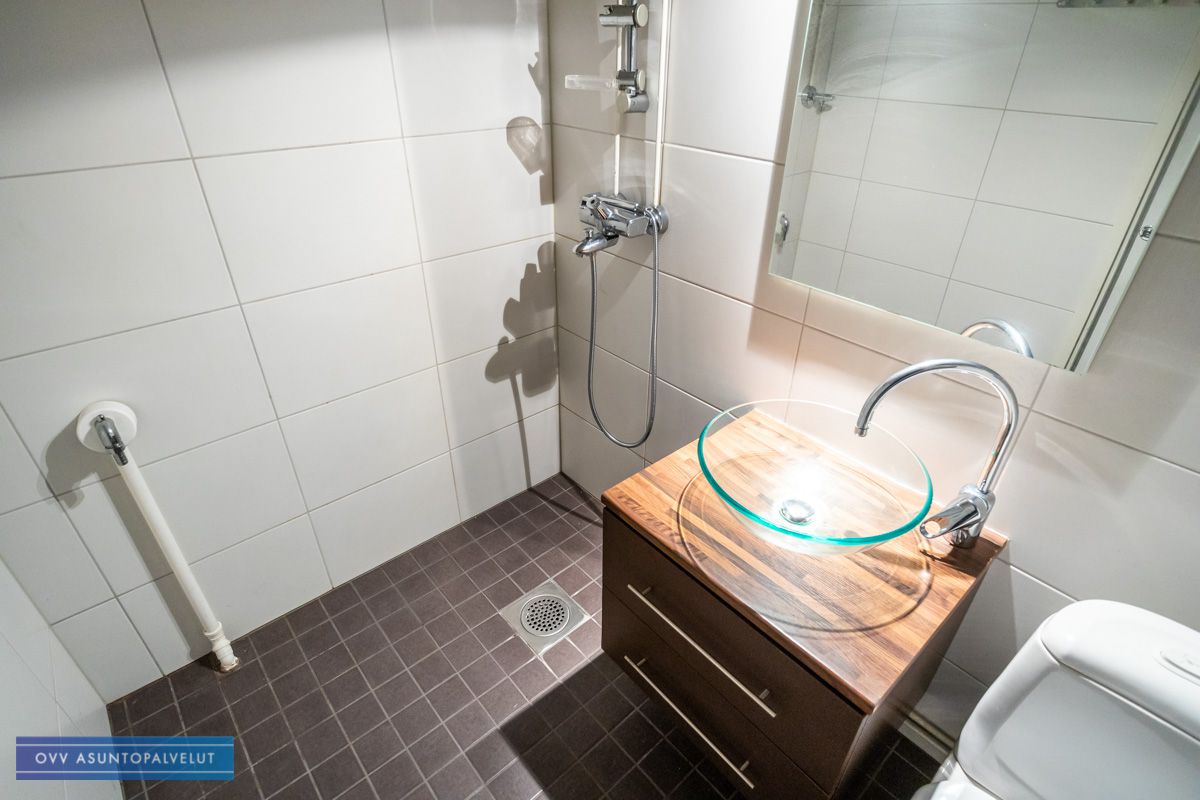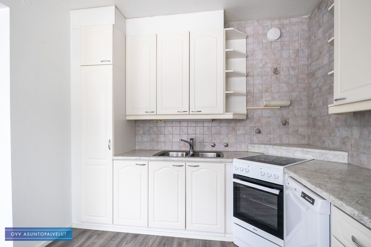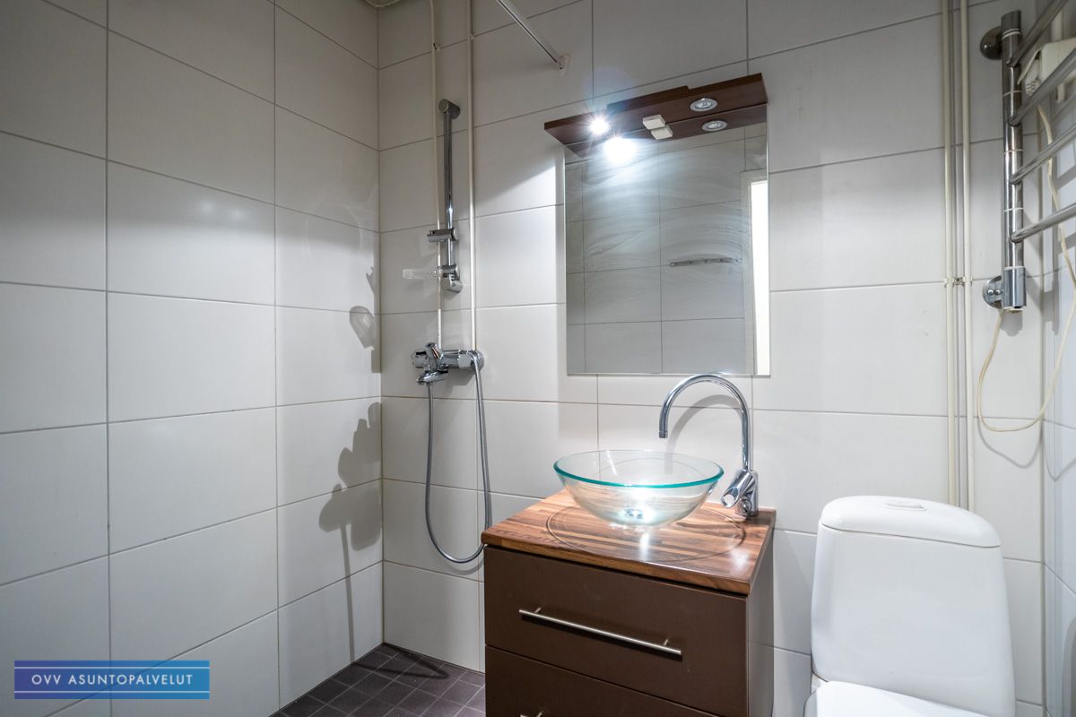 Huoneistossa on reilunkokoinen keittiö, siistit pintamateriaalit ja muutama vuosi sitten saneerattu kylpyhuone, jossa paikka ja liittimet pyykinpesukoneelle.