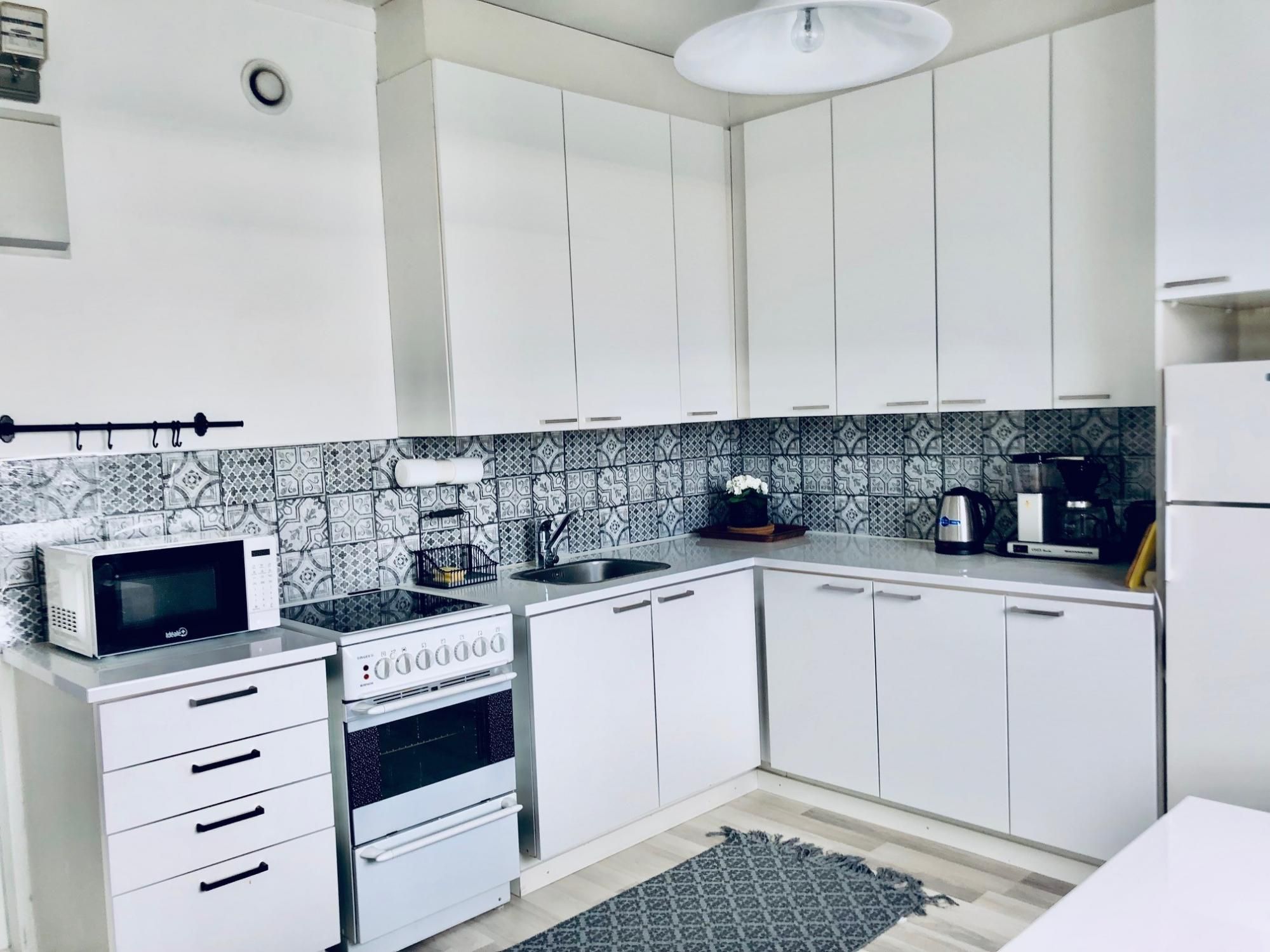 Keittiössä on hyvin tilaa isommallekin ruokapöydälle. Varusteluun kuuluu liesi sekä jenkkikaappi. Kylpyhuoneessa on paikka pyykinpesukoneelle, siisti harmaa massalattia sekä allas,- ja peilikaappi. Makuuhuoneen yhteydessä on tilava vaatehuone, joka tuo runsaasti säilytystilaa. Talossa on hissi maantasalta. Lisäksi asunnolle kuuluu huoneistokohtainen varasto. Lähikauppa sijaitsee aivan vieressä.