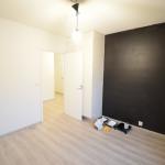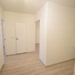 Eteisen lattiassa on tyylikästä tummaa laattaa, heti asuntoon tultaessa. Muualla lattiassa on harmaa laminaatti.