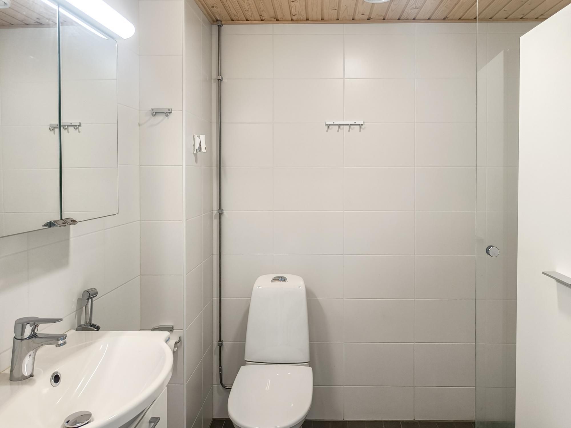 Tilavassa kylpyhuoneessa on allaskaapisto ja peilikaappi sekä tila- ja liitäntä pyykinpesukoneelle. Mikäli tarvitset autopaikan, niitä on vuokrattavana 35€/kk (sähköpistoke-paikka)
