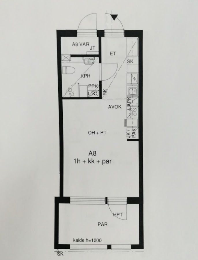 Luhtitalo, 31 m², 1h + tupakeittiö + lasitettu parveke