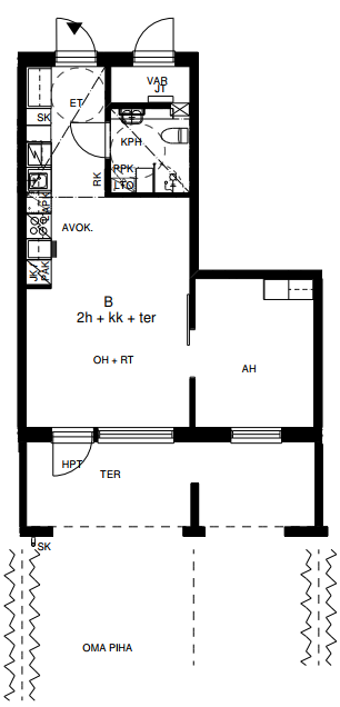 Luhtitalo, 42 m², 2h + ak + terassiparveke