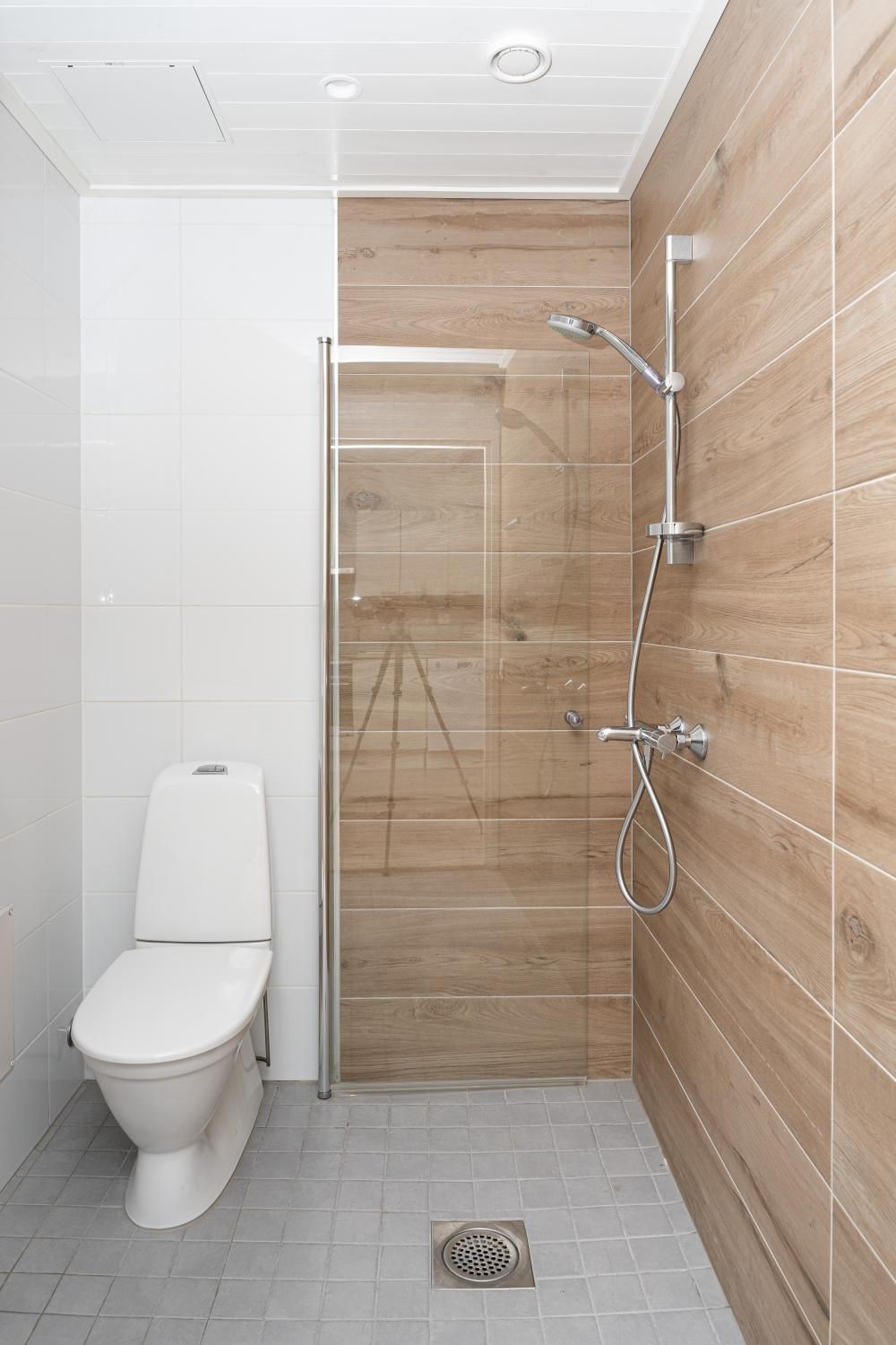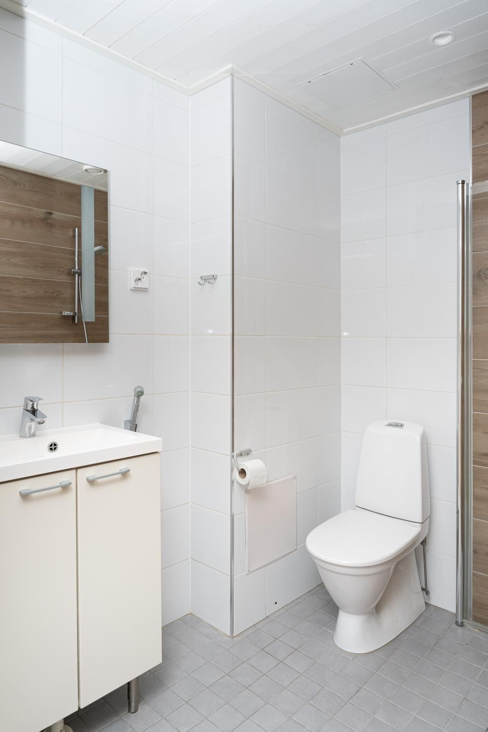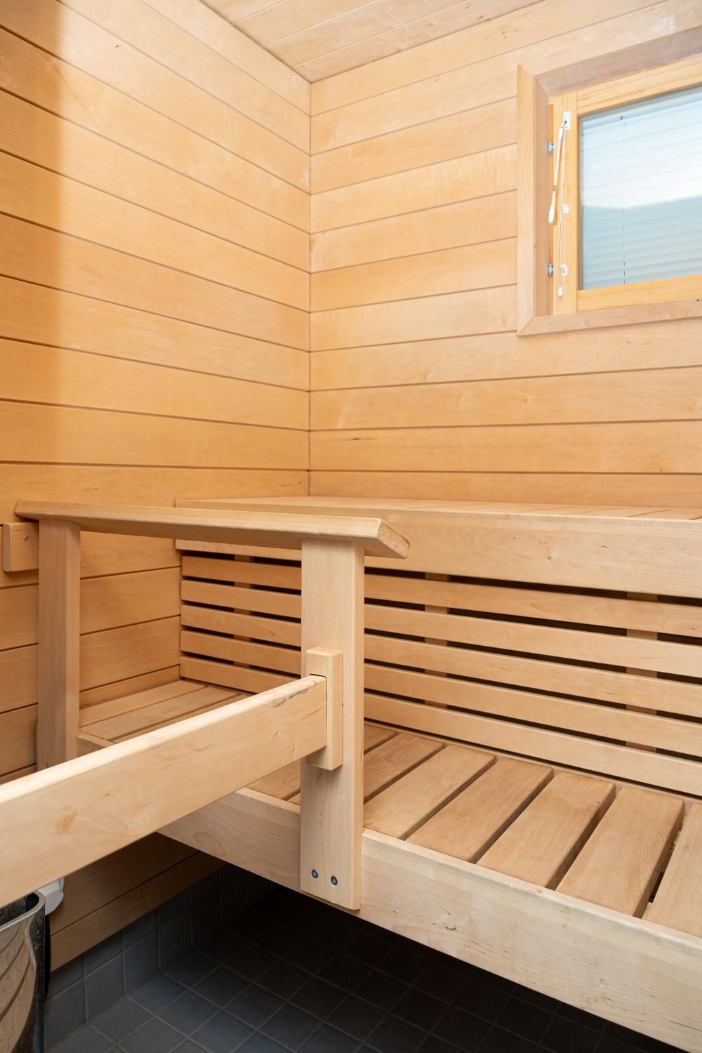 Makuuhuoneessa vaatekaapit. Kaapistot lisäksi eteisessä. Tilava kylpyhuone ja sauna, tila ja liitäntä pesukoneelle.